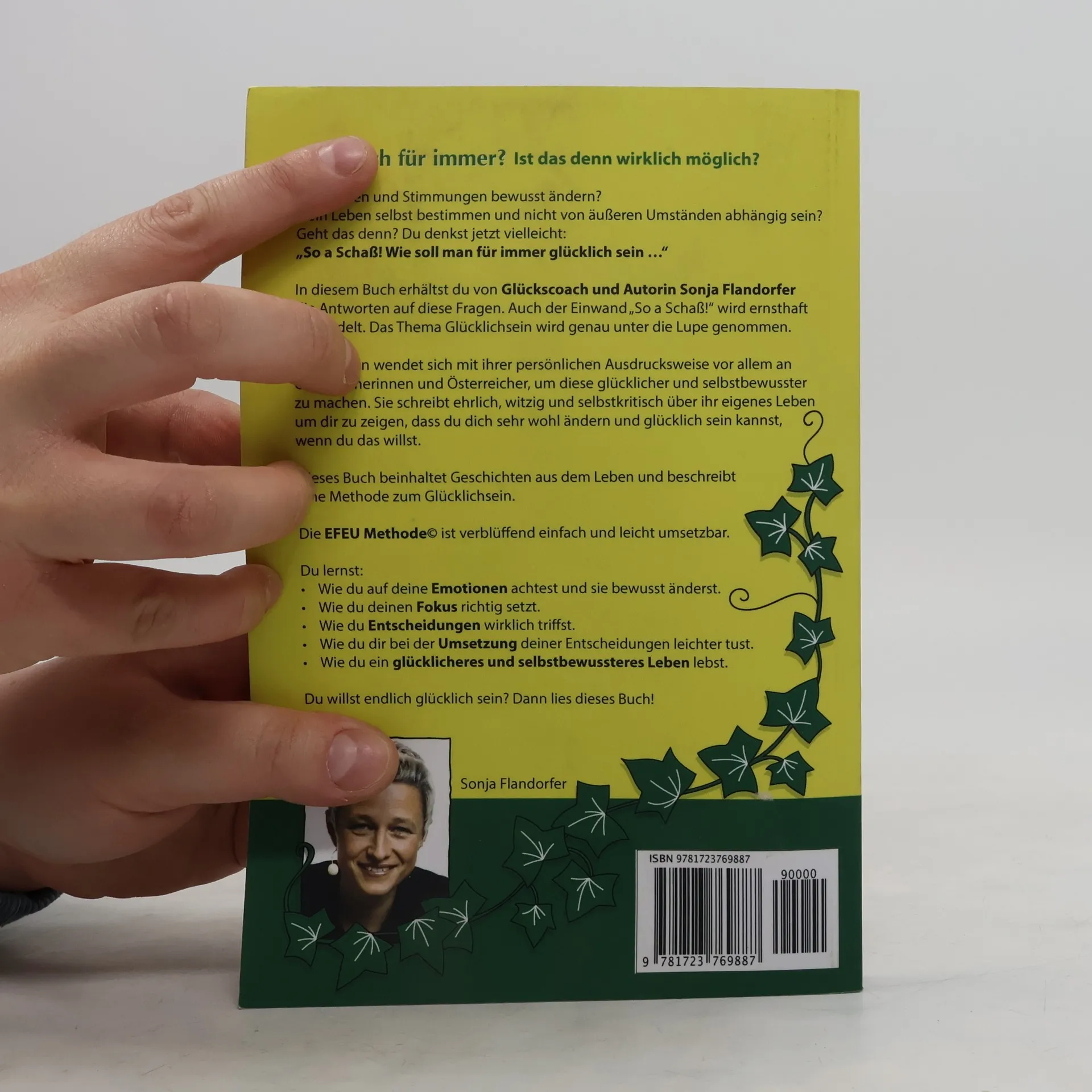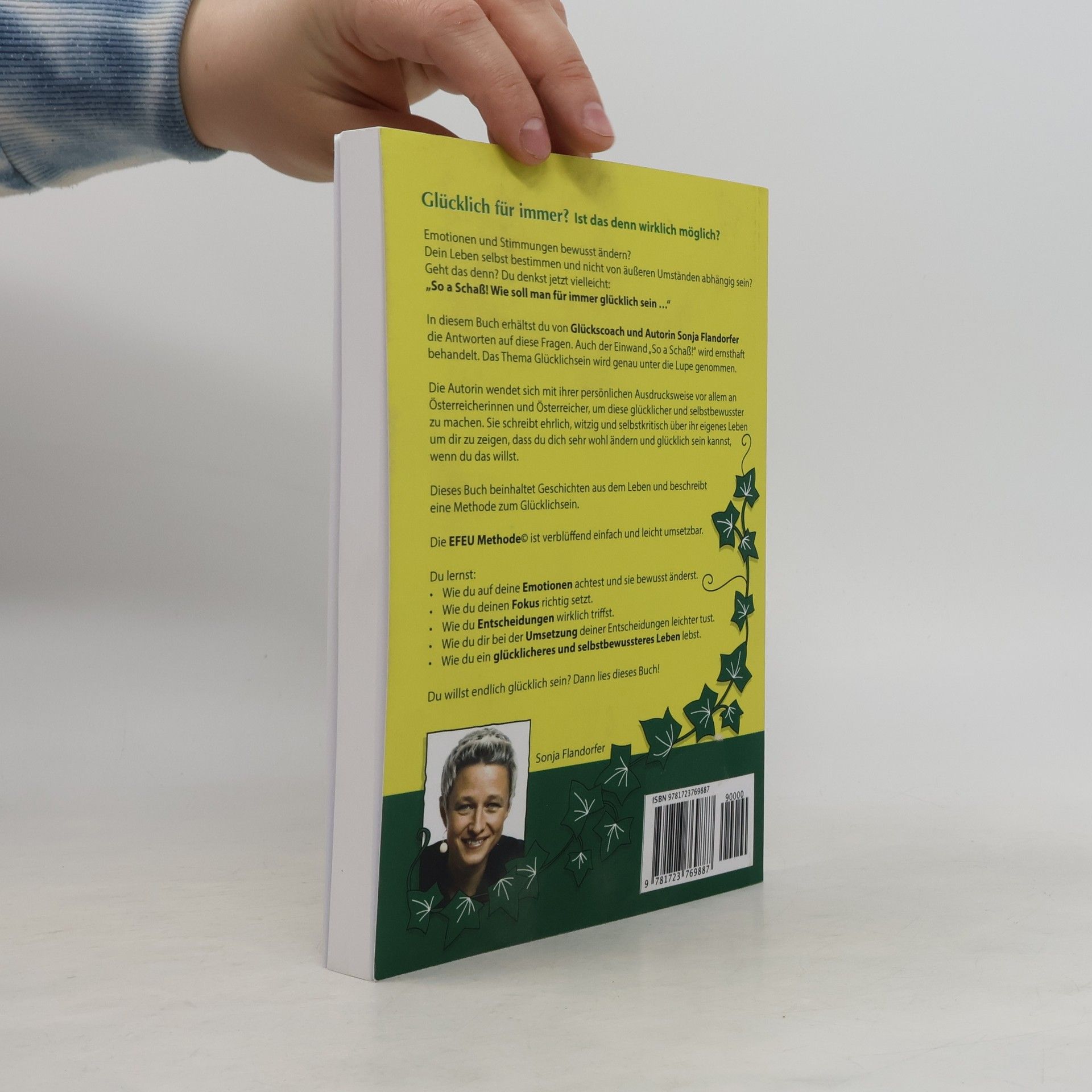 Ist es wirklich möglich, für immer glücklich zu sein? Kann man Emotionen und Stimmungen bewusst ändern und sein Leben selbst bestimmen, ohne von äußeren Umständen abhängig zu sein? Diese Fragen behandelt Glückscoach und Autorin Sonja Flandorfer in ihrem Buch. Sie geht auch auf den Einwand „So a Schaß!“ ein und beleuchtet das Thema Glücklichsein intensiv. Mit ihrer persönlichen Ausdrucksweise spricht sie vor allem Österreicherinnen und Österreicher an, um sie glücklicher und selbstbewusster zu machen. Im ersten Kapitel teilt sie ehrlich, witzig und selbstkritisch Einblicke in ihr eigenes Leben, um zu zeigen, dass Veränderung und Glück möglich sind, wenn man es will. In den folgenden Kapiteln präsentiert sie die EFEU Methode©, ein einfaches und umsetzbares Rezept zum Glücklichsein. Du lernst, wie du auf deine Emotionen achtest, deinen Fokus richtig setzt, Entscheidungen triffst und diese leichter umsetzt, um ein erfüllteres Leben zu führen. Kapitel fünf bietet zahlreiche Übungen, die du schrittweise in deinen Alltag integrieren kannst – vorausgesetzt, du strebst nach einem glücklicheren Leben. Bist du bereit, endlich glücklich zu sein? Dann lies weiter!