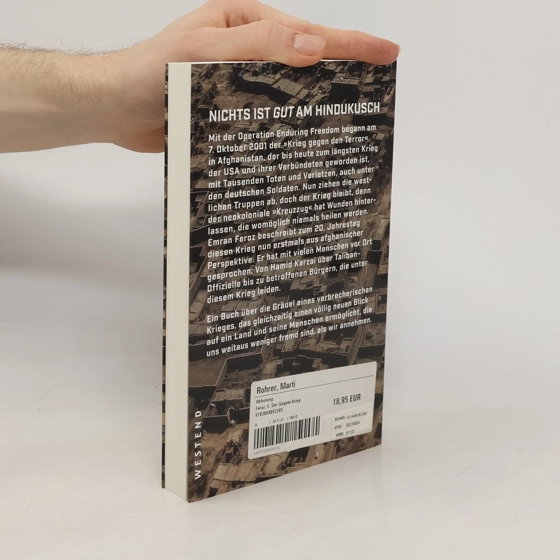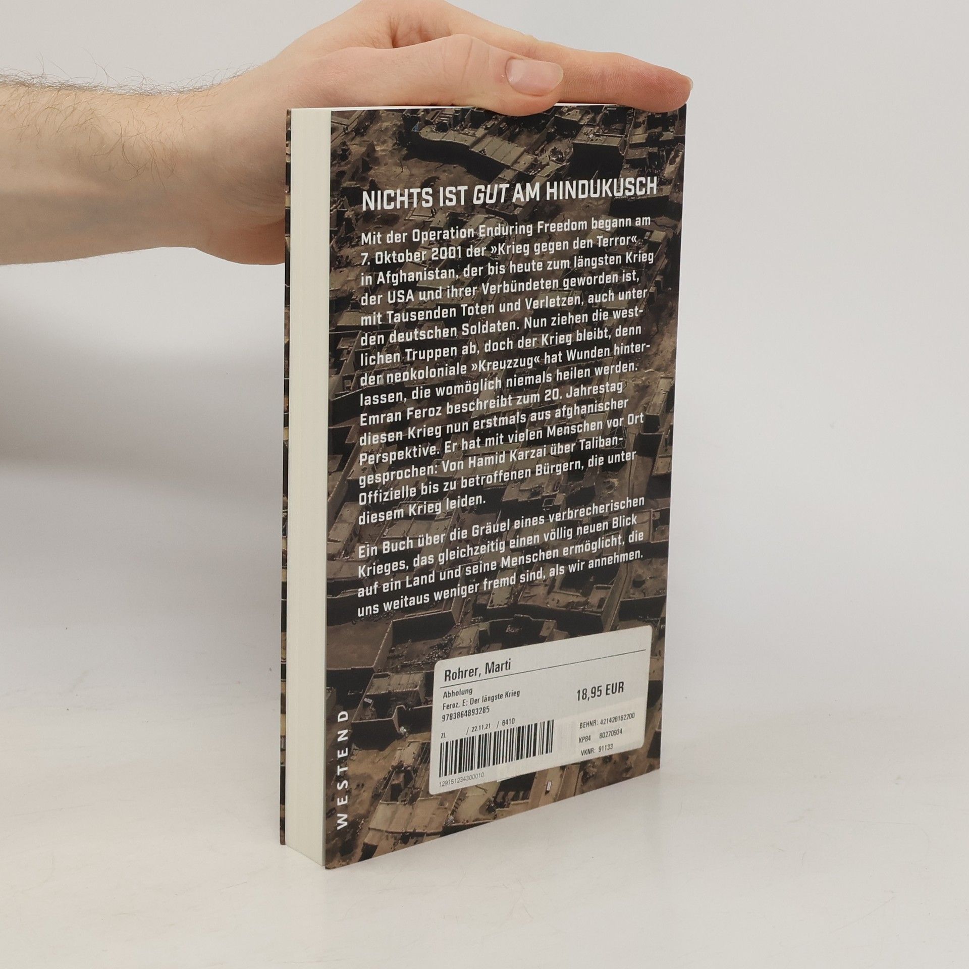 Mit der Operation Enduring Freedom begann am 7. Oktober 2001 der „Krieg gegen den Terror“ in Afghanistan, der bis heute zum längsten Krieg der USA und ihrer Verbündeten geworden ist, mit Tausenden Toten und Verletzen, auch unter den deutschen Soldaten. Nun ziehen die westlichen Truppen ab, doch der Krieg bleibt, denn der neokoloniale „Kreuzzug“ hat Wunden hinterlassen, die womöglich niemals heilen werden. Emran Feroz beschreibt zum 20. Jahrestag diesen Krieg nun erstmals aus afghanischer Perspektive. Er hat mit vielen Menschen vor Ort gesprochen: Von Hamid Karzai über Taliban-Offizielle bis zu betroffenen Bürgern, die unter diesem Krieg leiden. Ein Buch über die Gräuel eines verbrecherischen Krieges, das gleichzeitig einen völlig neuen Blick auf ein Land und seine Menschen ermöglicht, die uns weitaus weniger fremd sind, als wir annehmen.