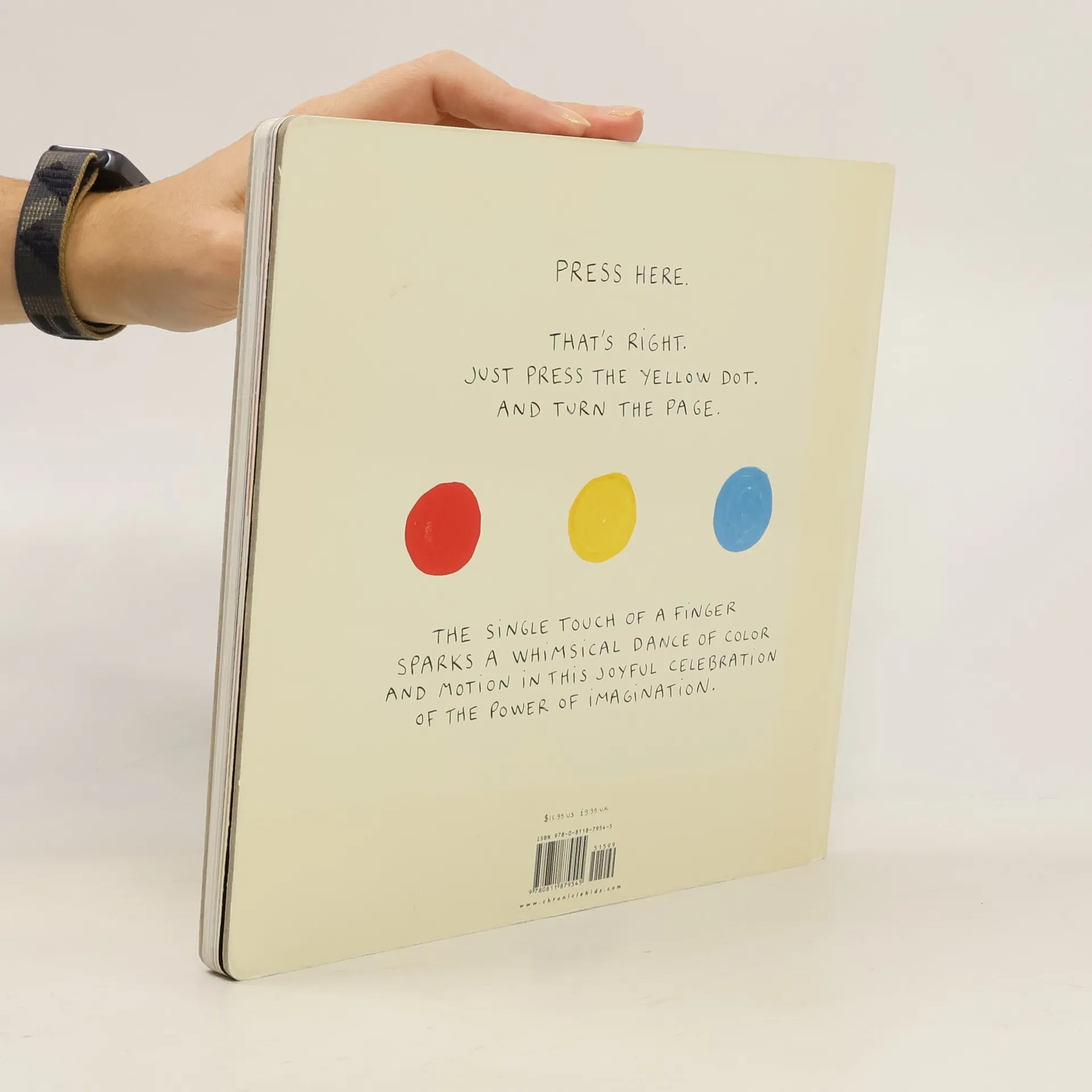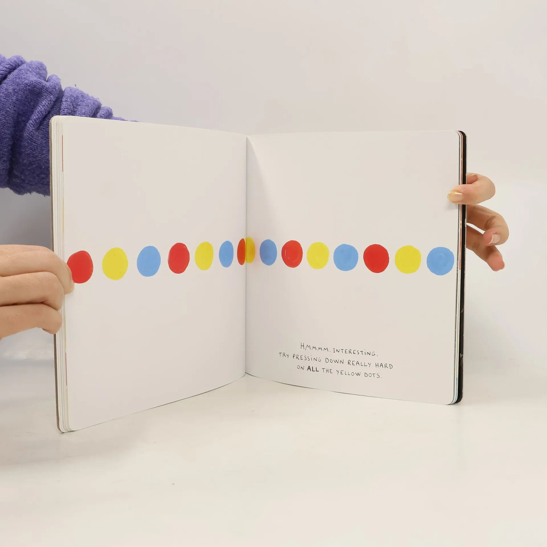 Using no special effects other than the reader's imagination, a series of dots multiplies, grows, or changes color by pressing, tilting, or blowing on the previous page.