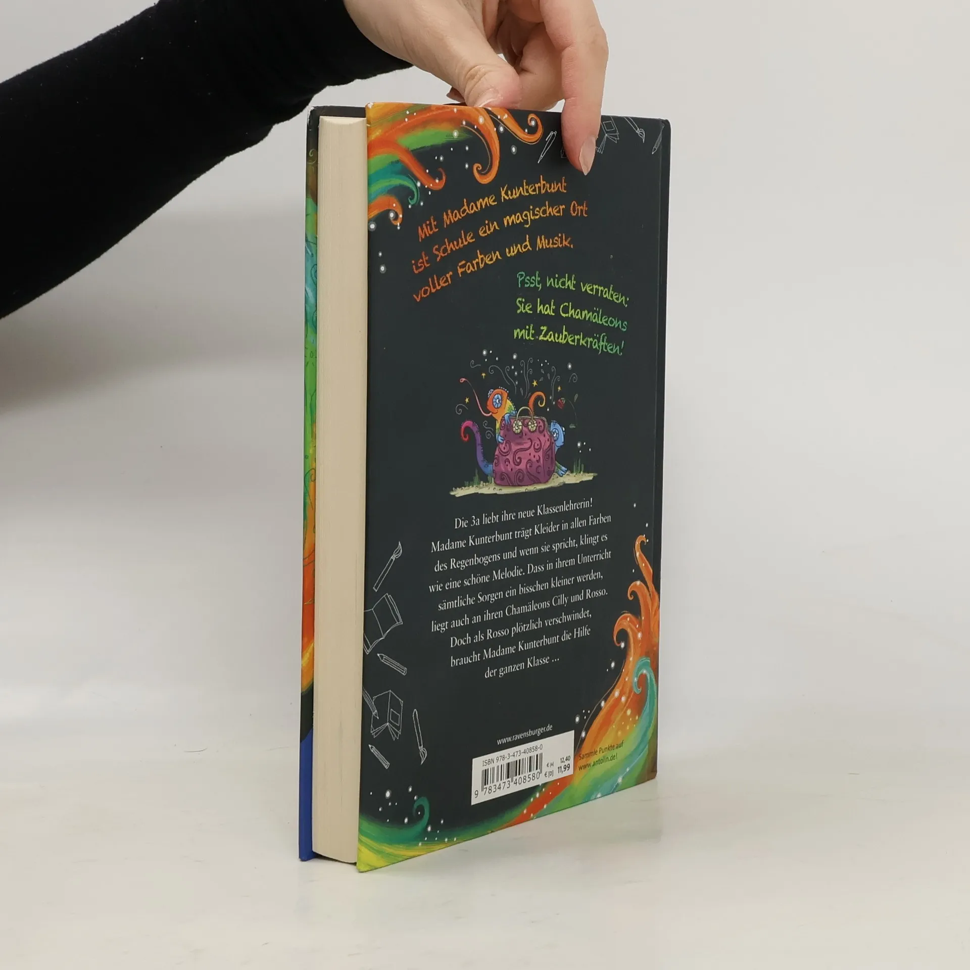 Wenn Schule schöner ist als Ferien! Die Schüler der 3a lieben ihre neue Klassenlehrerin! Madame Kunterbunt trägt Kleider in allen Farben des Regenbogens, wenn sie spricht, klingt es wie eine schöne Melodie, und sämtliche Sorgen werden in ihrer Gegenwart ein bisschen kleiner. Das liegt auch an ihren Chamäleons Cilly und Rosso, die immer herrlich viel Blödsinn anstellen und auch ansonsten echt fantastisch sind. Denn ihre schimmernden Schuppen haben Zauberkräfte! Entdecke alle Abenteuer rund um Madame Kunterbunt: Band 1: Madame Kunterbunt und das Geheimnis der Mutmagie Band 2: Madame Kunterbunt und das Abenteuer der Wunderwünsche Band 3: Madame Kunterbunt und das Rätsel des Mitmachzaubers