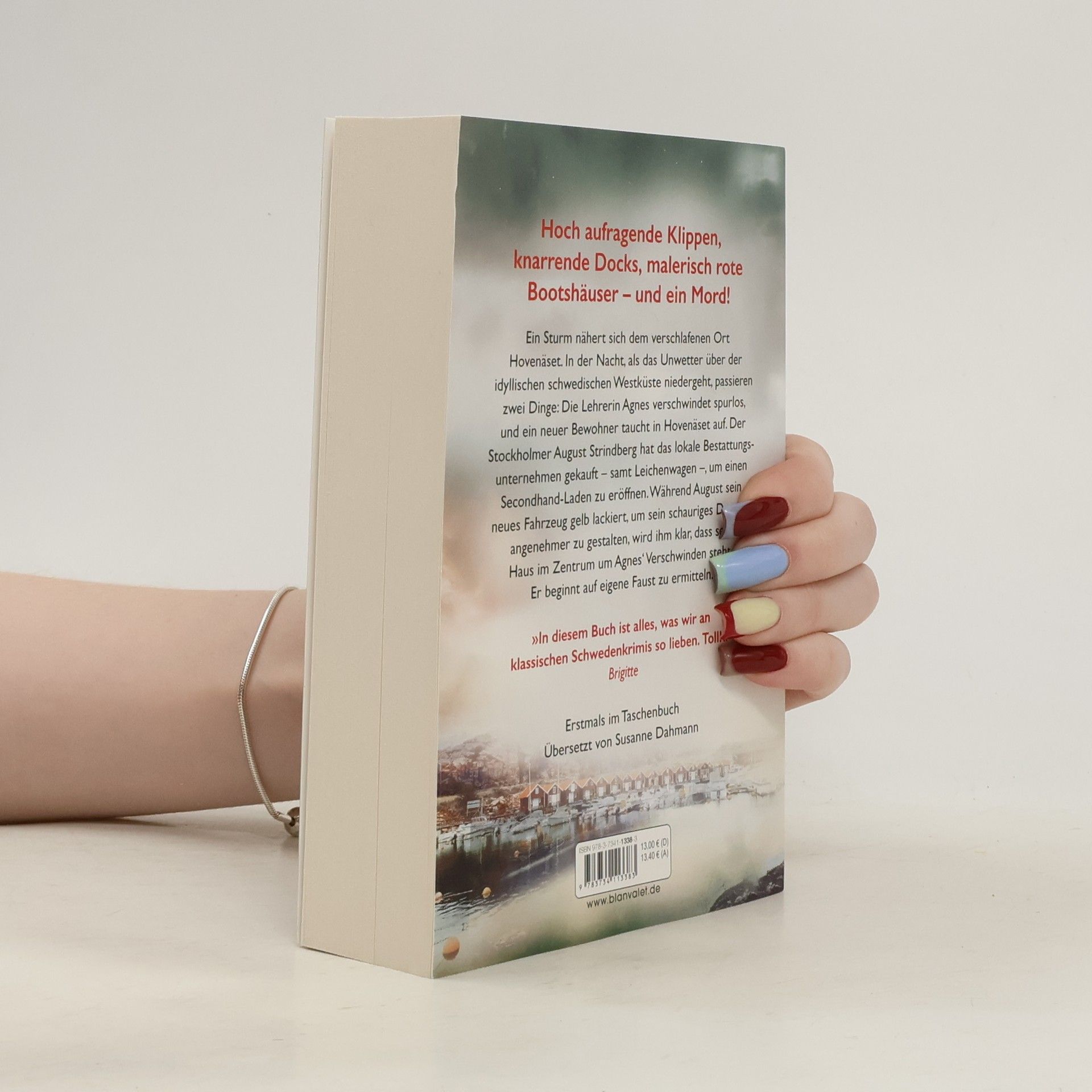 Hoch aufragende Klippen, knarrende Docks, malerisch rote Bootshäuser – und ein Mord: Der Auftakt der beliebten Bestsellerserie! Ein Sturm nähert sich dem verschlafenen Ort Hovenäset. In der Nacht, als das Unwetter über der idyllischen schwedischen Westküste niedergeht, passieren zwei Dinge: Die Lehrerin Agnes verschwindet spurlos, und ein neuer Bewohner taucht in Hovenäset auf. Der Stockholmer August Strindberg hat das lokale Bestattungsunternehmen gekauft – samt Leichenwagen –, um einen Secondhand-Laden zu eröffnen. Während August sein neues Fahrzeug gelb lackiert, um sein schauriges Domizil angenehmer zu gestalten, wird ihm klar, dass sein Haus im Zentrum um Agnes‘ Verschwinden steht. Er beginnt auf eigene Faust zu ermitteln. Lust auf noch mehr Schweden? Lernen Sie Kristina Ohlssons andere Krimireihen kennen, zum Beispiel mit »Aschenputtel« oder »Schwesterherz«.