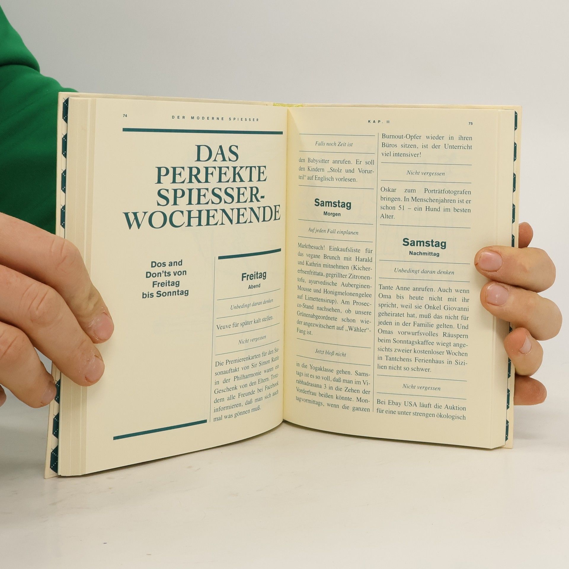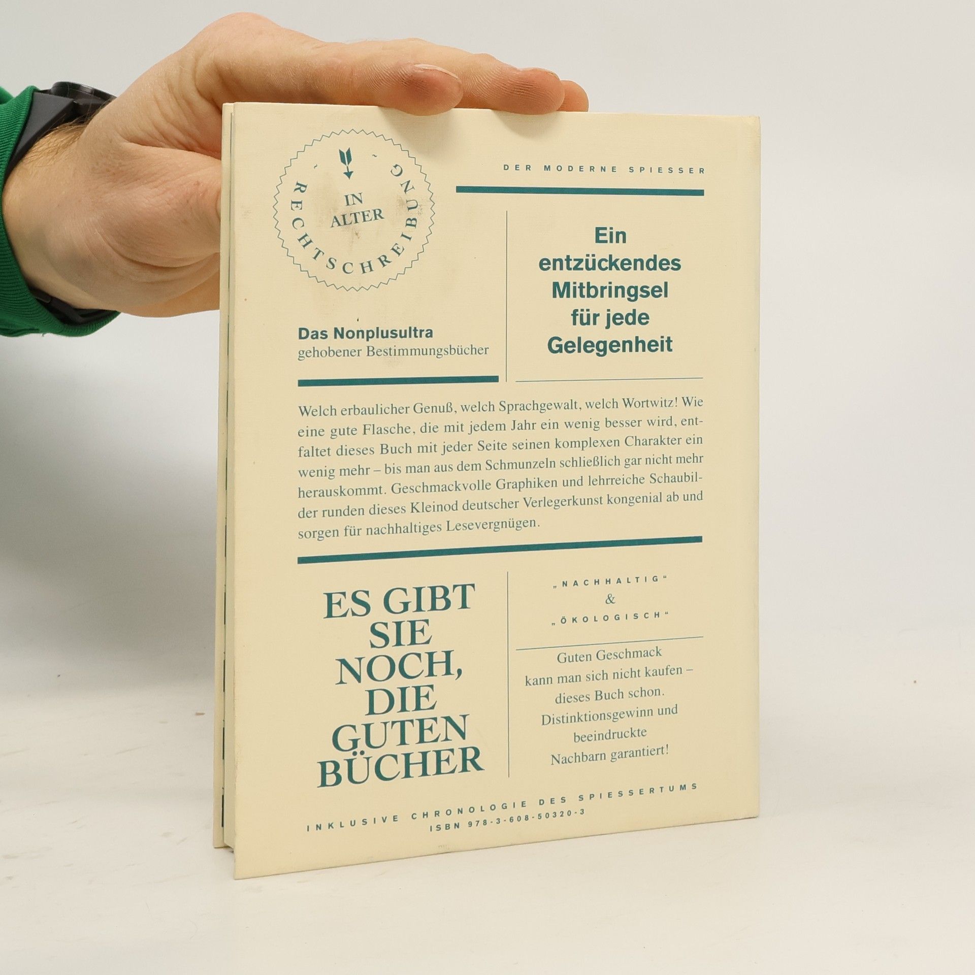 Man muss sich den Spießer als einen glücklichen Menschen vorstellen. Endlich wurde ihm nun ein Kompendium in Buchform gewidmet! Mit einem lachenden und einem zwinkernden Auge blättert sich der geneigte Leser durch diese Sammlung geistreicher Bonmots und handverlesener Alltagsbeobachtungen. Welch erbaulicher Genuss, welch Sprachgewalt, welch Wortwitz! Wie eine gute Flasche, die mit jedem Jahr ein wenig besser wird, entfaltet dieses Buch mit jeder Seite seinen komplexen Charakter ein wenig mehr – bis man aus dem Schmunzeln schließlich gar nicht mehr herauskommt. Geschmackvolle Grafiken und lehrreiche Schaubilder runden dieses Kleinod deutscher Verlegerkunst kongenial ab und sorgen für nachhaltiges Lesevergnügen. Guten Geschmack kann man sich nicht kaufen – dieses Buch schon. Distinktionsgewinn und beeindruckte Nachbarn garantiert!