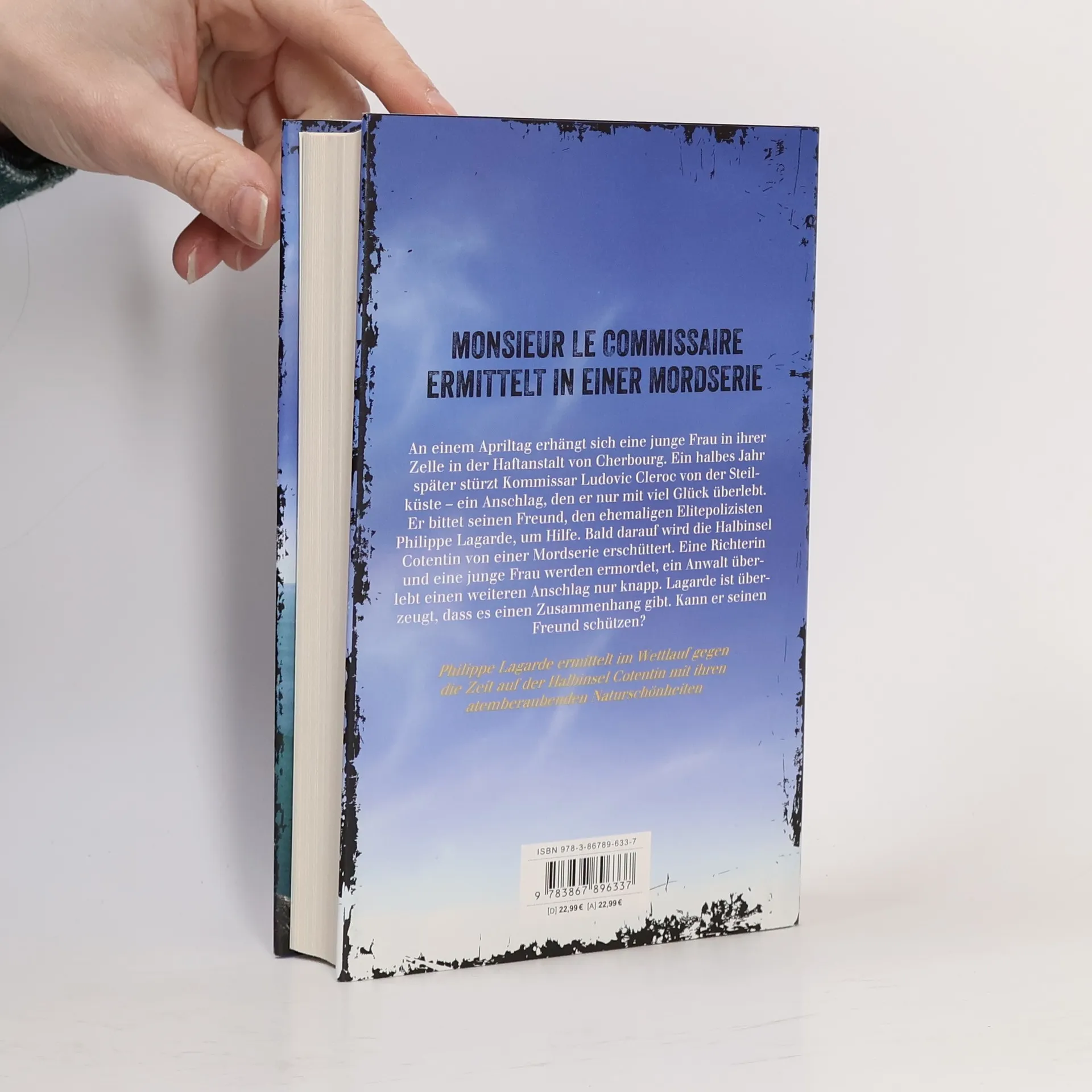 Monsieur le Commissaire ermittelt in einer Mordserie An einem Apriltag erhängt sich eine junge Frau in ihrer Zelle in der Haftanstalt von Cherbourg. Ein halbes Jahr später stürzt Kommissar Ludovic Cleroc von der Steilküste – ein Anschlag, den er nur mit viel Glück überlebt. Er bittet seinen Freund, den ehemaligen Elitepolizisten Philippe Lagarde, um Hilfe. Bald darauf wird die Halbinsel Cotentin von einer Mordserie erschüttert. Eine Richterin und eine junge Frau werden ermordet, ein Anwalt überlebt einen weiteren Anschlag nur knapp. Lagarde ist überzeugt, dass es einen Zusammenhang gibt. Kann er seinen Freund schützen? Philippe Lagarde ermittelt im Wettlauf gegen die Zeit auf der Halbinsel Cotentin mit ihren atemberaubenden Naturschönheiten