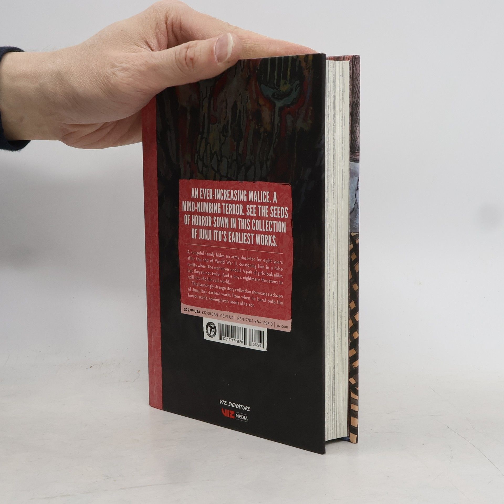 An ever-increasing malice. A mind-numbing terror. The seeds of horror are sown in this collection of Junji Ito’s earliest works.A vengeful family hides an army deserter for eight years after the end of World War II, cocooning him in a false reality where the war never ended. A pair of girls look alike, but they’re not twins. And a boy’s nightmare…