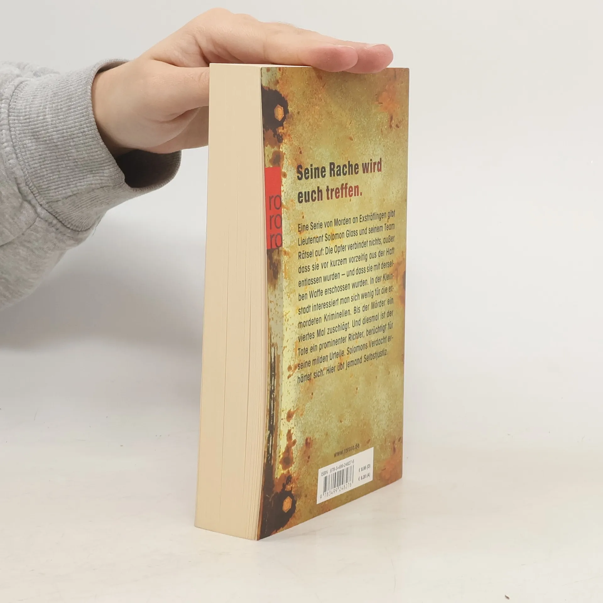Seine Rache wird euch treffen Eine Serie von Morden an Exsträflingen gibt Lieutenant Solomon Glass und seinem Team Rätsel auf: Die Opfer verbindet nichts, außer dass sie vor kurzem vorzeitig aus der Haft entlassen wurden – und dass sie mit derselben Waffe erschossen wurden. In der Kleinstadt interessiert man sich wenig für die ermordeten Kriminellen. Bis der Mörder ein viertes Mal zuschlägt. Und diesmal ist der Tote ein prominenter Richter, berüchtigt für seine milden Urteile. Solomons Verdacht erhärtet sich: Hier übt jemand Selbstjustiz.