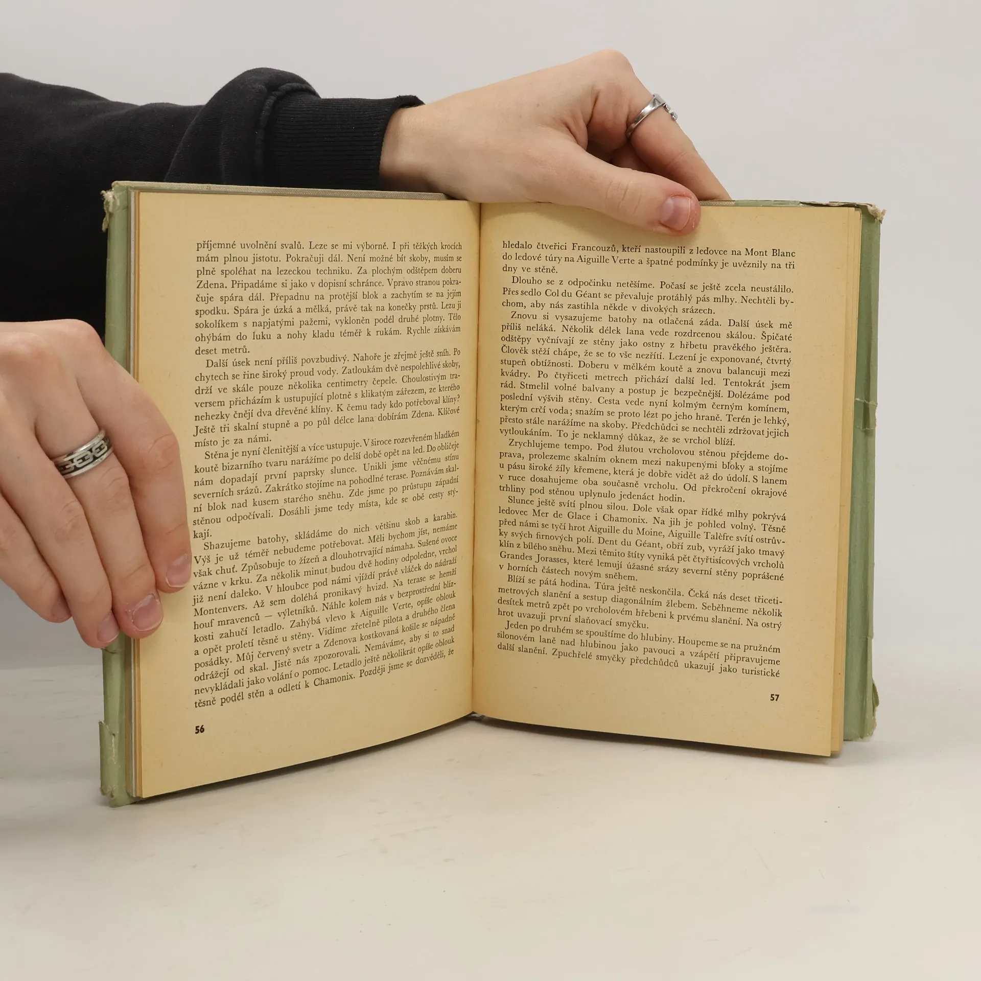 Osobní zkušenosti a dojmy autorovy z výstupů na Charmoz, Petit Dru, Montblank, Grandes Jorasses, Matterhorn, Eiger a Cima Grande di Lavaredo v Alpách a na Dongus-Orun, Nakra-tau a Dych-tau na Kavkaze jsou popsány živě, a přece bez patosu. Poznáváme nejen technické podmínky výstupu, ale i podmínky morální.