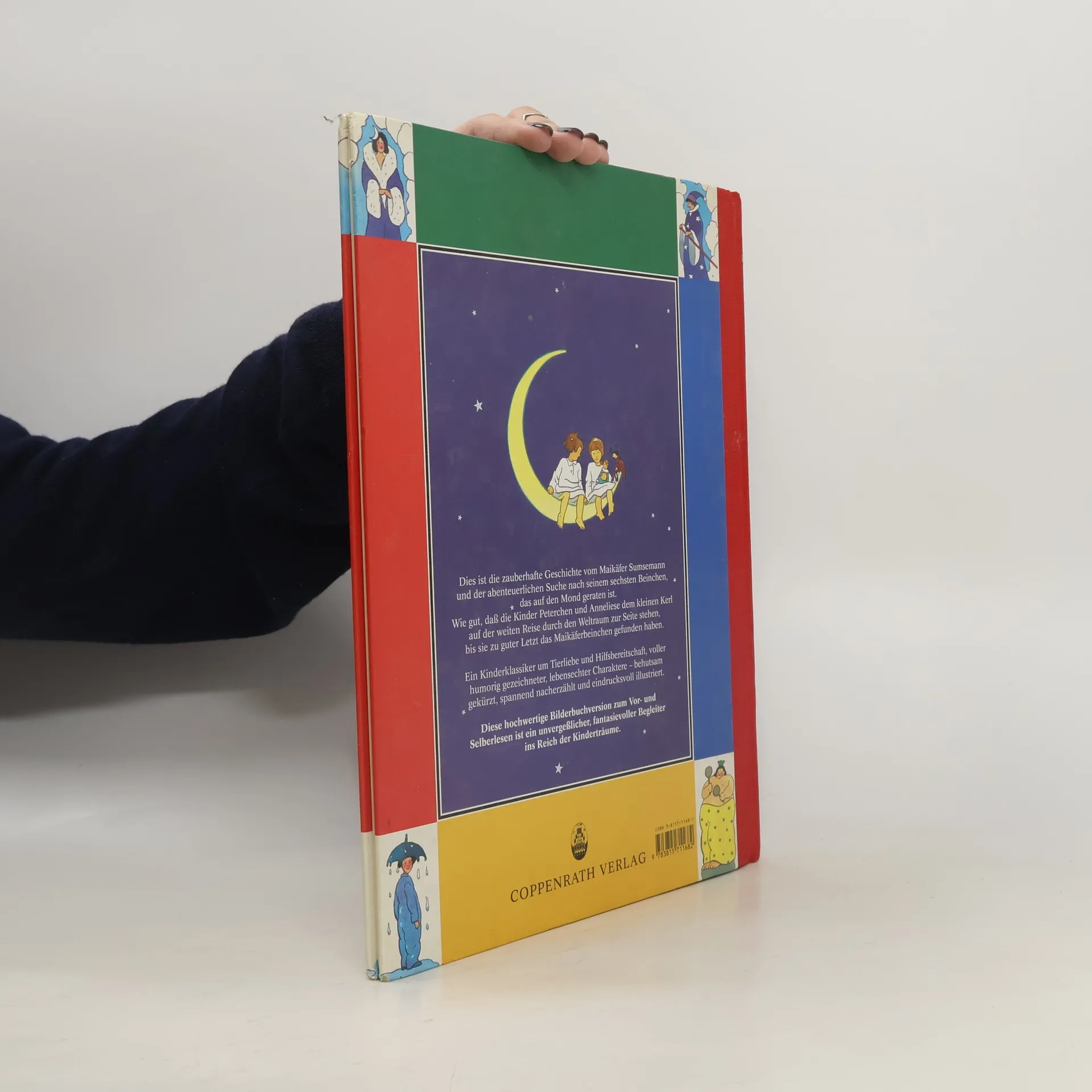 Maikäfer Sumsemann will mit Hife seiner beiden Freunde Peterchen und Anneliese sein sechstes Beinchen zurückholen, das vor langer Zeit auf den Mond gezaubert wurde. Auf ihrer Reise erleben die drei spannende Abenteurer. "Immer schneller und immer höher flogen die drei. Das Haus, die Wiese, der See, der Wald lag bald unter ihnen. Die Hügel, die Berge, an denen die weißen Nachtnebel hingen, vesanken. Und dann lag die ganze Erde dort unten, unermeßlich tief in der blauen, stillen Nacht; mit allen ihren Ländern und Meeren; die große liebe Erde in tiefem Schlaf."