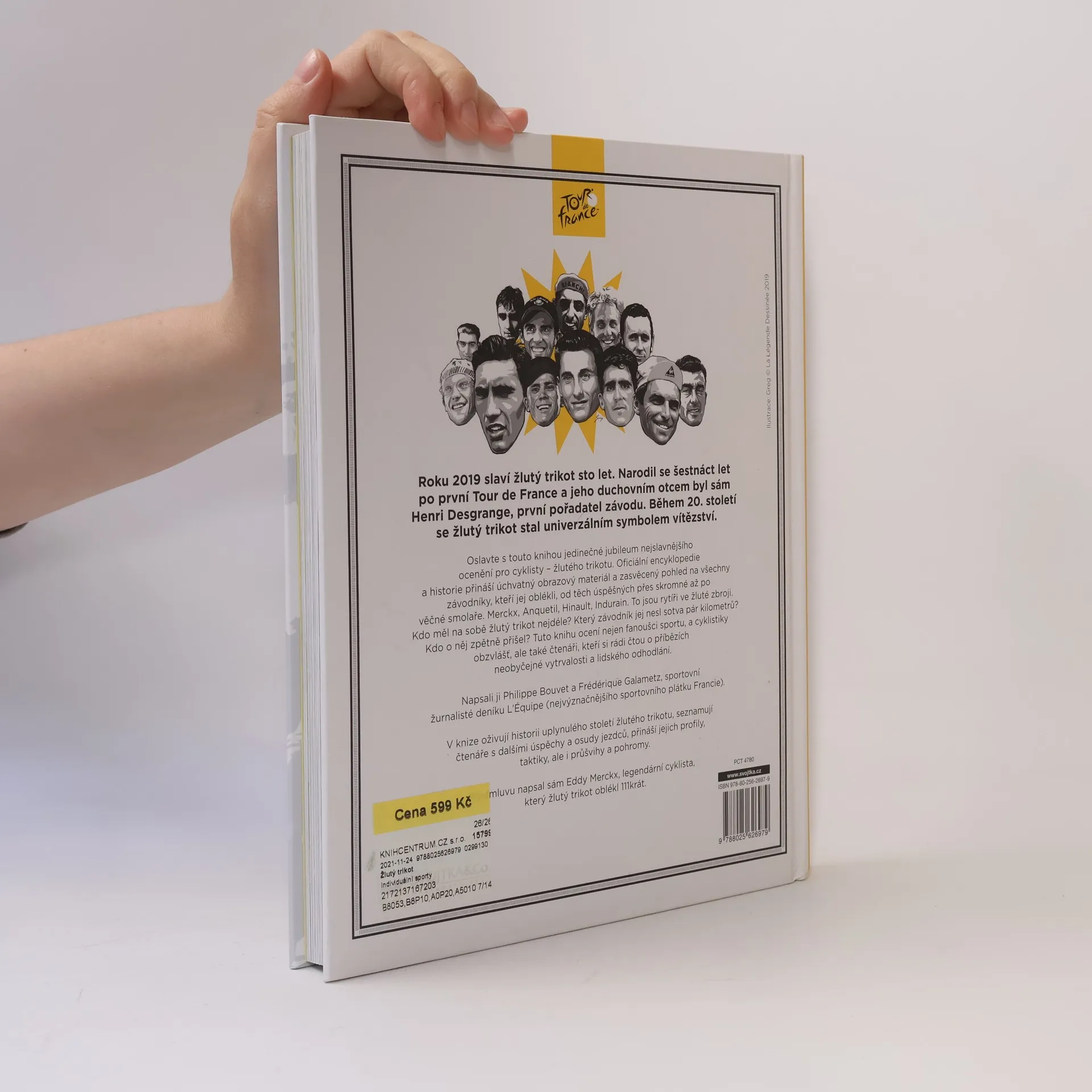 Tato kniha nesmí chybět žádnému fanouškovi Tour de France. Je oslavou století nejznámějšího cyklistického ocenění legendárního žlutého trikotu, který vymyslel sám Henri Desgrange. Přináší ohromující záběry fotografů současnosti i minulosti a podává ojedinělý souhrn informací o trikotu a jeho nositelích. Autoři oživují 100letou historii žlutého trikotu a podávají příběhy o neskutečných sportovních výkonech. Je to pravá cyklistická síň slávy. Závěrečné statistiky jsou doplněné o aktuální výsledky ročníku 2019 Tour de France. Potkejte se s Indurainem, Anquetilem, Hinaultem, Merckxem, Froomem a Saganem. Dejte si týmovou časovku, zdolejte obávané vrcholy, šetřte síly k finálovému spurtu! Zjistěte, kdo byli odvážní jezdci, kteří před sto lety mohli na Tour obléknout žlutou poprvé. Milovníci sportu, cyklistiky obzvlášť, si v této knize přijdou na své.