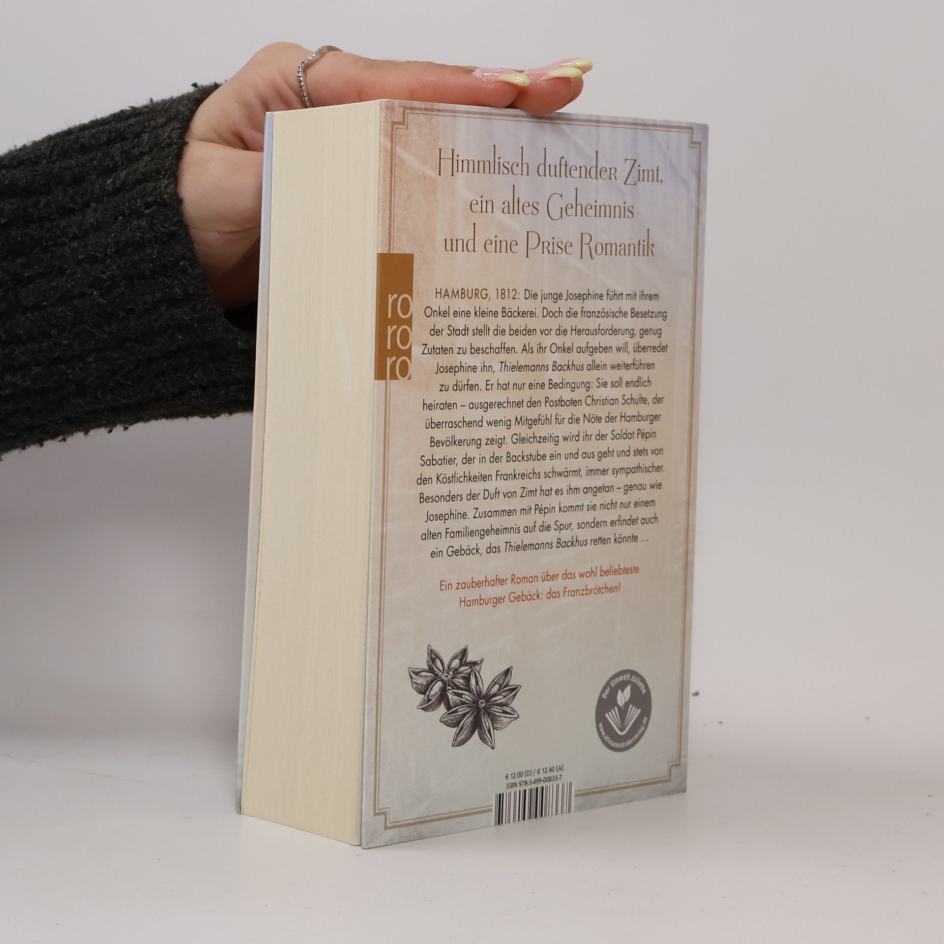 Himmlisch duftender Zimt, ein altes Geheimnis und eine Prise Romantik HAMBURG, 1812: Die junge Josephine führt mit ihrem Onkel eine kleine Bäckerei. Doch die französische Besetzung der Stadt stellt die beiden vor die Herausforderung, genug Zutaten zu beschaffen. Als ihr Onkel aufgeben will, überredet Josephine ihn, Thielemanns Backhus allein weiterführen zu dürfen. Er hat nur eine Bedingung: Sie soll endlich heiraten – ausgerechnet den Postboten Christian Schulte, der überraschend wenig Mitgefühl für die Nöte der Hamburger Bevölkerung zeigt. Gleichzeitig wird ihr der Soldat Pépin Sabatier, der in der Backstube ein und aus geht und stets von den Köstlichkeiten Frankreichs schwärmt, immer sympathischer. Besonders der Duft von Zimt hat es ihm angetan – genau wie Josephine. Zusammen mit Pépin kommt sie nicht nur einem alten Familiengeheimnis auf die Spur, sondern erfindet auch ein Gebäck, das Thielemanns Backhus retten könnte … Ein zauberhafter Roman über das wohl beliebteste Hamburger Gebäck: das Franzbrötchen!