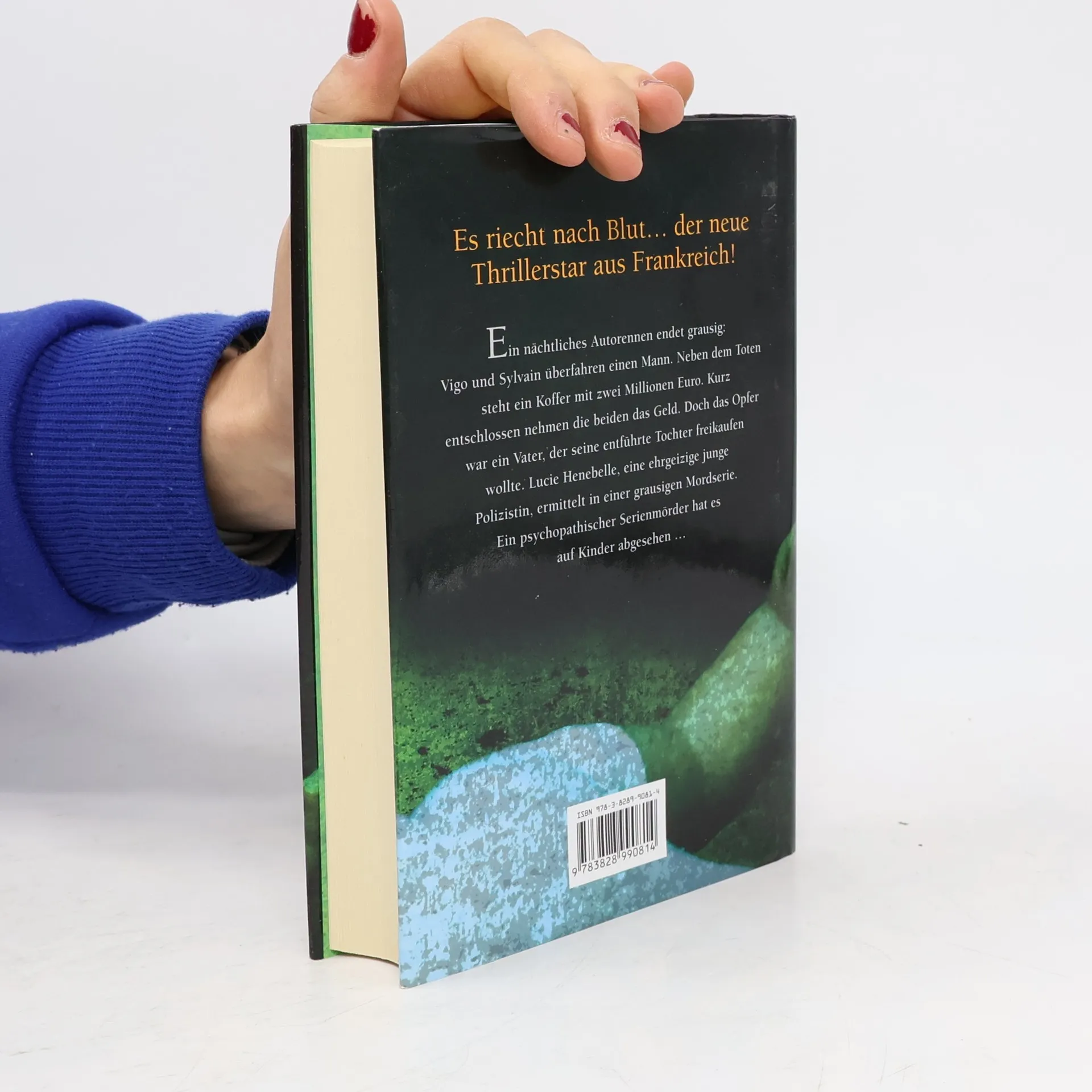 Ein übermütiges Autorennen auf einem nachtdunklen Windradfeld endet grausig: Vigo und Sylvain überfahren einen Mann. Neben dem Toten finden sie einen Koffer mit zwei Millionen Euro. Kurz entschlossen, versenken sie die Leiche im Moor und verstecken das Geld. Was sie nicht ahnen: Das Opfer war ein Vater, der seine entführte Tochter freikaufen wollte. Ein psychopathischer Serienmörder hat es auf Kinder abgesehen. Ein Thriller, der an Thomas Harris und Tess Gerritsen erinnert.