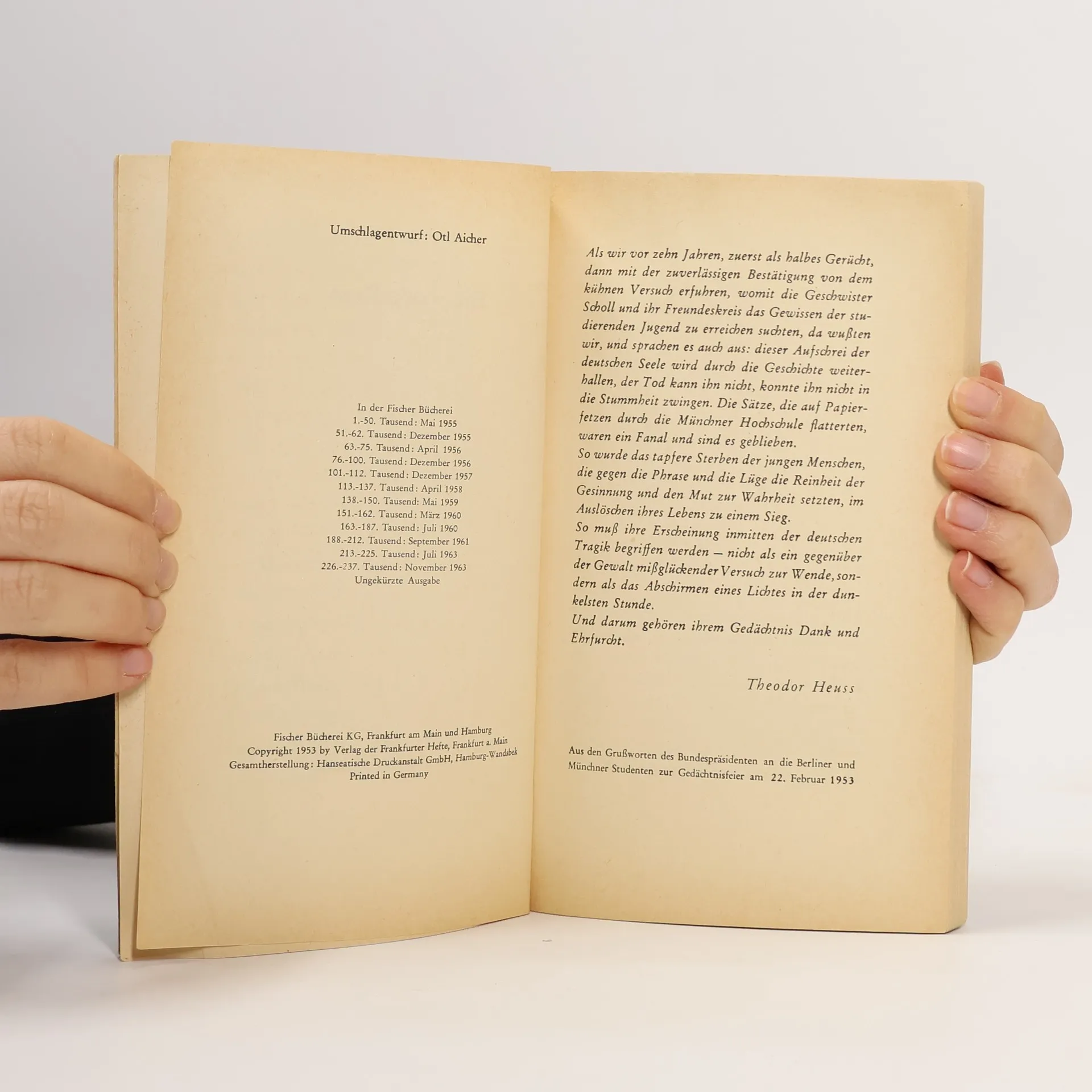 Die 'Weiße Rose' wurde zum Symbol einer Aktion, mit der einige Münchner Studenten zum Widerstand gegen die Diktatur Hitlers aufriefen. Sie bezahlten dafür mit ihrem Leben. Inge Scholl, die Schwester der Geschwister Hans und Sophiel, die unter den Hingerichteten waren, erzählt mit Hilfe von geretteten Dokumenten die Vorgeschichte und den Verlauf der Bewegung