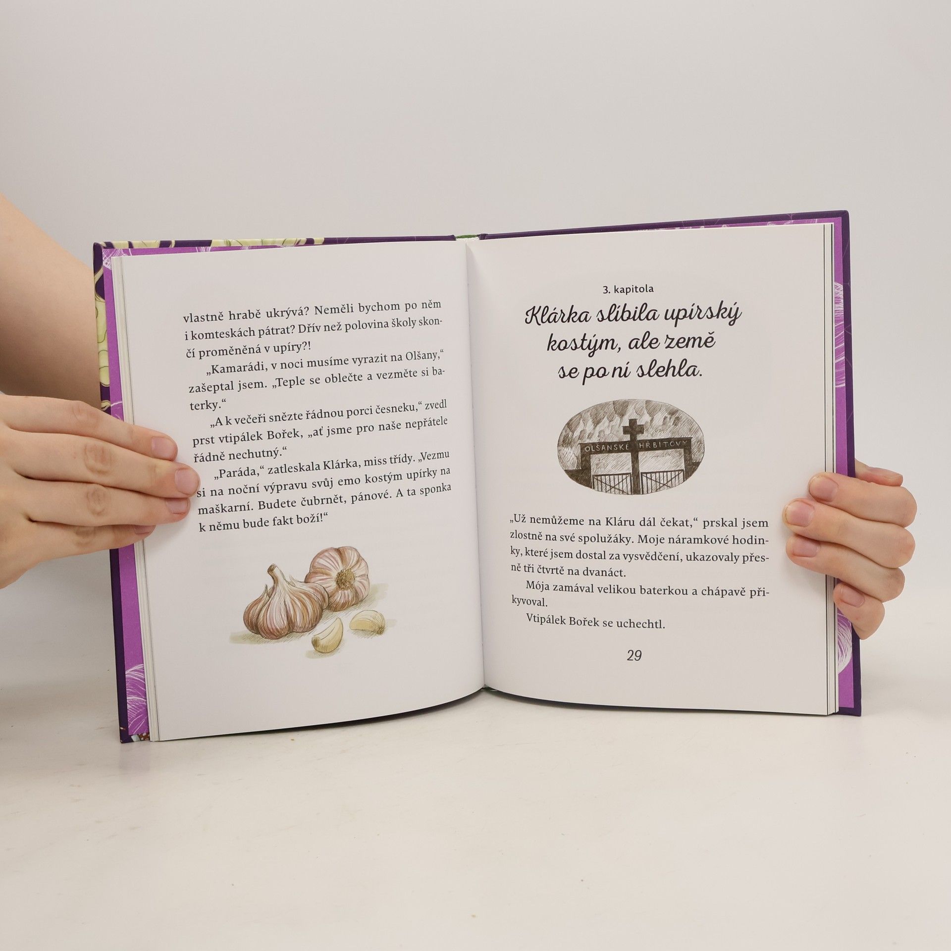 Malé upírky Ela a Hela začaly chodit do stejné školy jako Emil. Všichni žáci i učitelé jsou v ohrožení života, ale Emil ví své. Boj na život a na smrt začíná. Naštěstí má Emil za sebou partu neohrožených česnektariánů a společně se rozhodnou krizovou situaci ve škole vyřešit na vlastní pěst. Další příběh z úspěšné série o Emilovi a upírech je tady! Kniha je určena pro děti od 6 let.