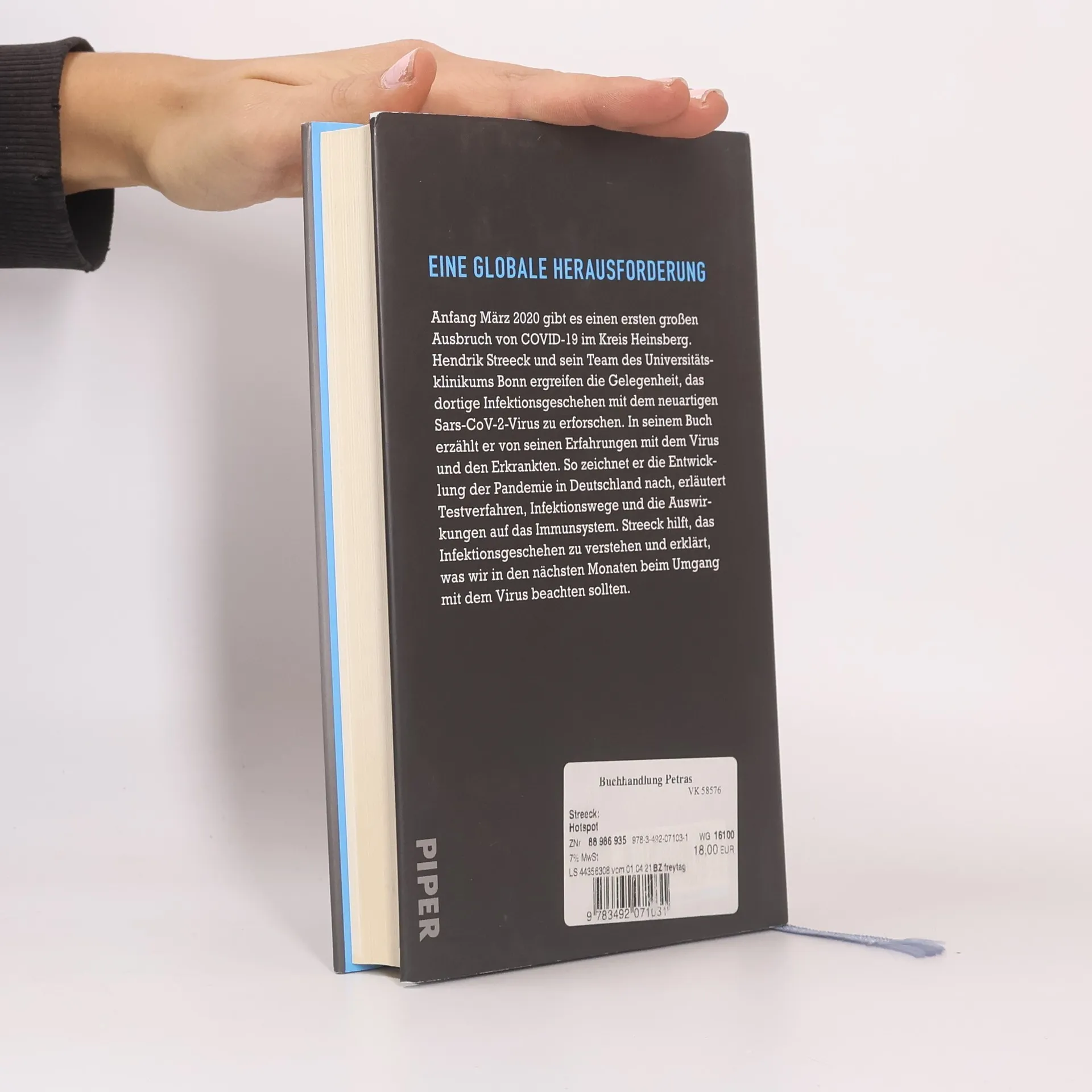 Eine globale Herausforderung Der erste große Ausbruch von COVID-19 in Deutschland bot eine unglaubliche Chance. Denn was in Heinsberg passierte, würde bald überall passieren. Für Hendrik Streeck stand deshalb fest, dass man nicht tatenlos zuschauen konnte, wie sich das Infektionsgeschehen entwickelte. Vielmehr stellte er sich die Frage: Was können wir dazu beitragen, das Virus zu bekämpfen, seine Ausbreitung einzudämmen? Antworten darauf fand er bei seiner Studie in Gangelt im Kreis Heinsberg, denn dort gab es zu dieser Zeit eine solche Dichte an Infizierten wie nirgendwo sonst in Deutschland, und da das öffentliche Leben dort weitestgehend zum Erliegen gekommen war, ließ sich das Infektionsgeschehen gut nachvollziehen. Dadurch bot sich die einmalige Gelegenheit, kurz- und langfristig Wissen auf vielen Ebenen zu generieren, um damit das neuartige Virus und das Pandemiegeschehen besser einschätzen zu können: Wie breitete sich das Virus aus, welches Ausmaß hatte das Infektionsgeschehen überhaupt? Wie verhielt es sich mit der Immunität? Und was machte dieses Virus mit dem Menschen, was waren die Symptome, und wie reagierte das Immunsystem?»Hotspot« bietet einen spannenden Einblick in die aktuelle Forschung und liefert zugleich neueste Erkenntnisse zu Sars-CoV-2 und dem Pandemiegeschehen.