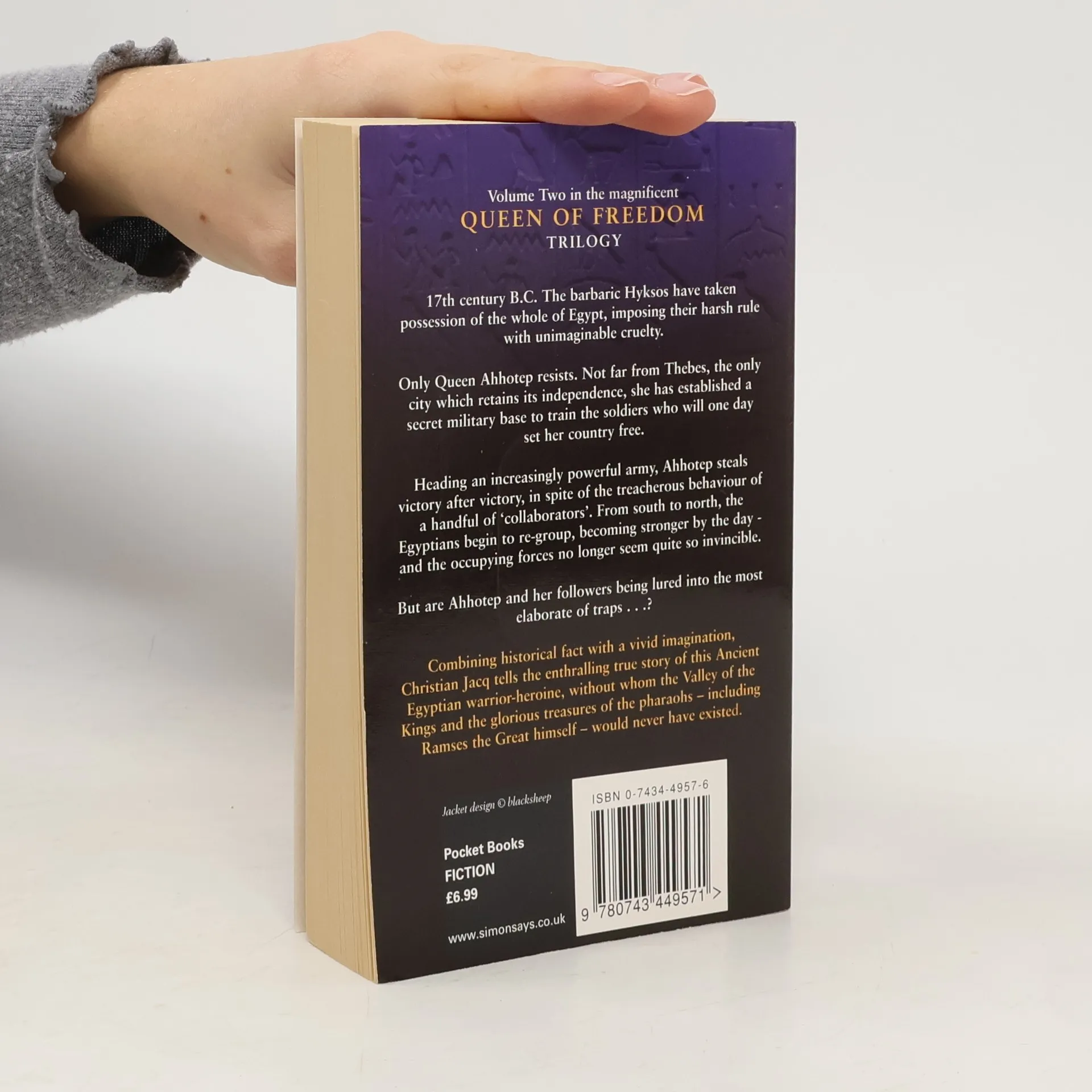 17th century B.C. The barbaric Hyksos have taken possession of the whole of Egypt, imposing their harsh rule with unimaginable cruelty. Only Queen Ahhotep has yet to succumb. Not far from Thebes, the only city which retains its independence, she has established a secret military base to train the soliders who will one day set her country free. And even when, during an initial skirmish, her husband is killed, the Queen refuses to give in, turning instead to her eldest son, Kames, who must learn to take his father's place and become pharaoh in his turn. Heading an increasingly powerful army, Ahhotep steals victory after victory, despite the treacherous behaviour of a handful of 'collaborators'. From south to north, the Egyptians begin to re-group, becoming stronger by the day - and the occupying forces no longer seem quite so invincible. Unless Queen Ahhotep and her followers are being lured into the most elaborate of traps . . .