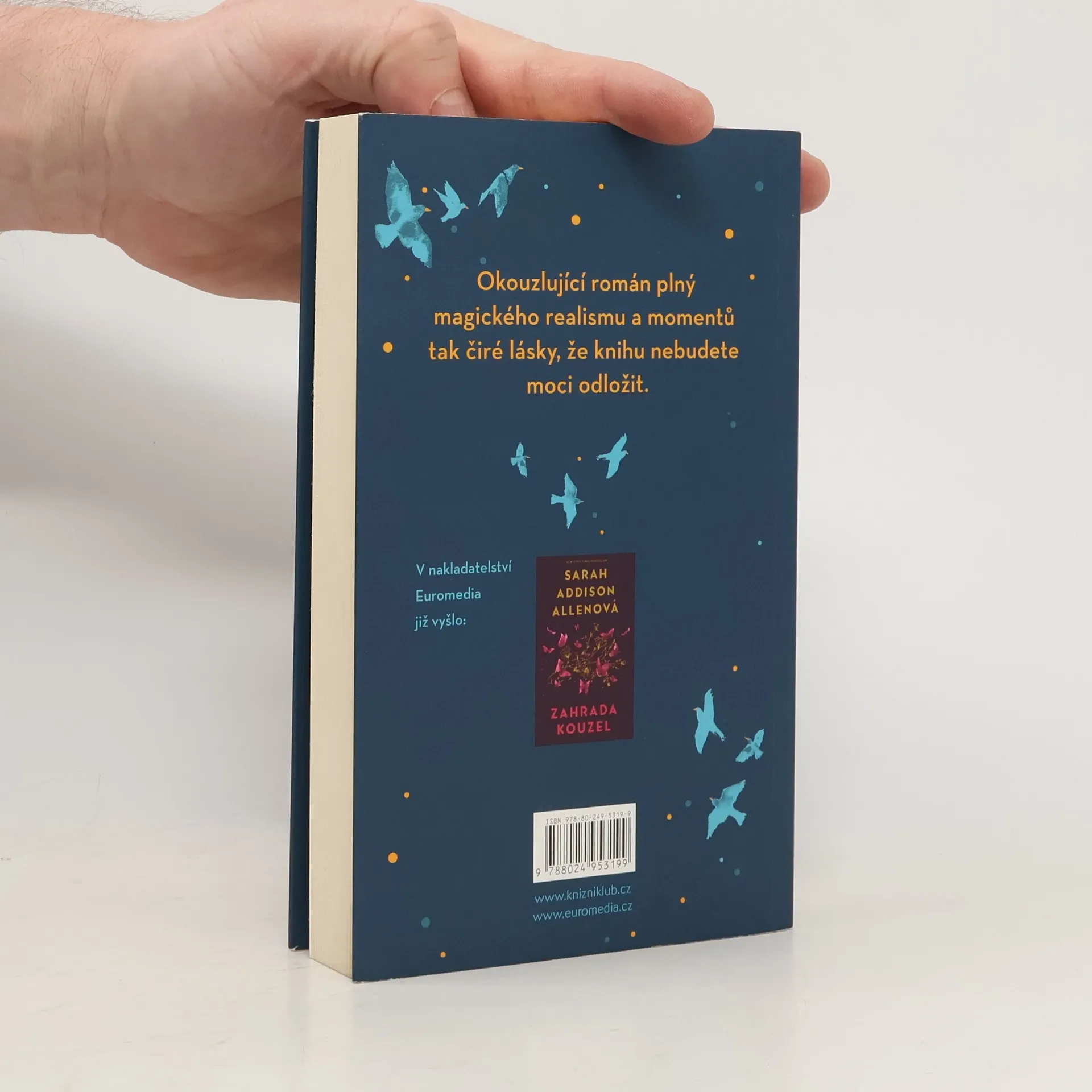 Okouzlující román plný magického realismu a momentů tak čiré lásky, že nebudete moci knihu odložit. Mezi světem skutečným a imaginárním existují příběhy, jež se odvíjejí neobyčejným způsobem. Nedaleko pobřeží Jižní Karolíny leží ostrov Mallow, kde se nachází rezidence Chmýříčkov – úchvatná stará kamenná budova ve tvaru podkovy, pojmenovaná podle drobných tyrkysových ptáčků – chmýrek tyrkysových –, kteří do života tamních obyvatel vnášejí prvky magických tajností. A právě sem se nastěhuje po smrti své matky Zoey. Co tam čeká zrovna na ni?