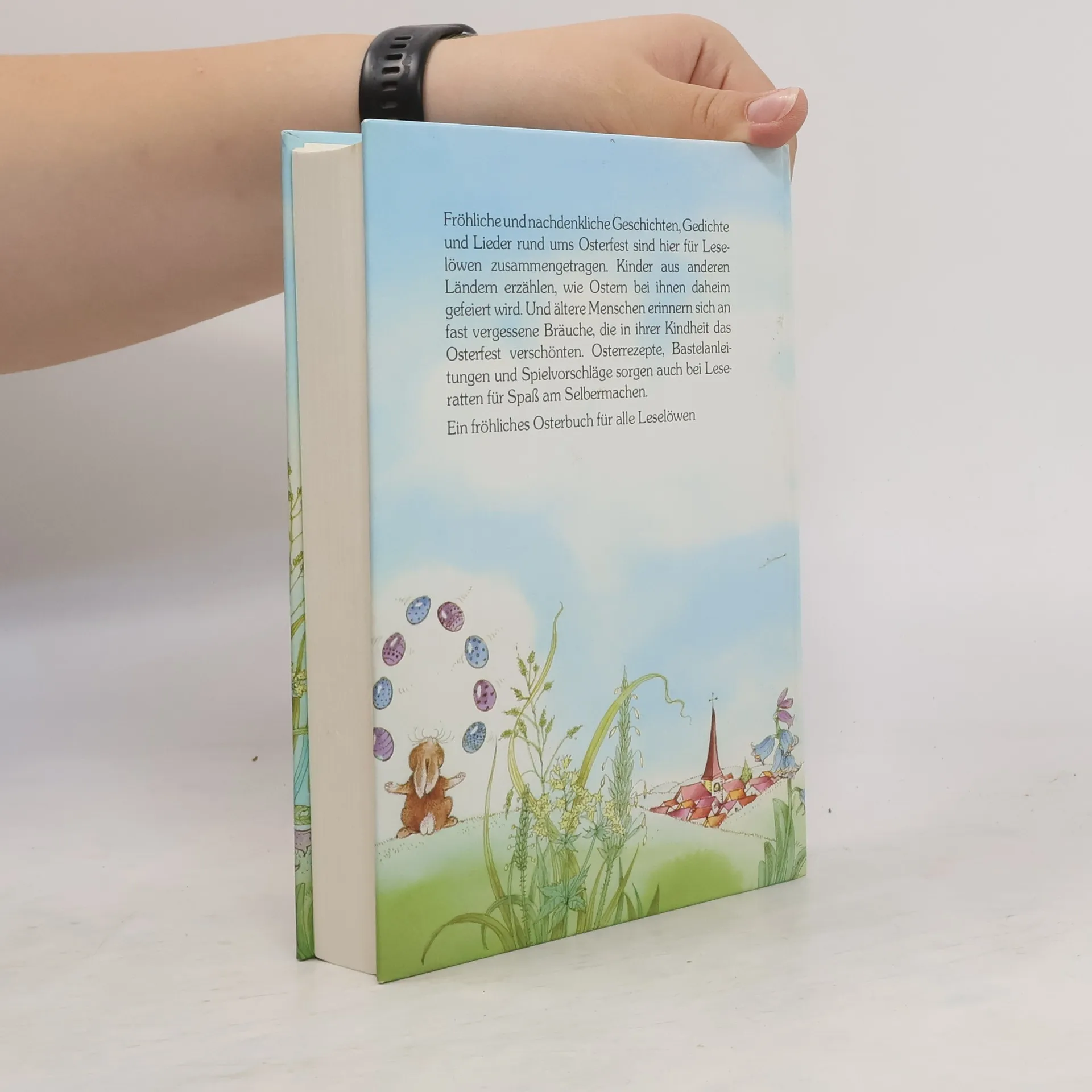 Fröhliche und nachdenkliche Geschichten, Gedichte und Lieder rund ums Osterfest sind hier für Leselöwen zusammengetragen. Kinder aus anderen Ländern erzählen, wie Ostern bei ihnen daheim gefeiert wird. Und ältere Menschen erinnern sich an fast vergessene Bräuche, die in ihrer Kindheit das Osterfest verschönten. Osterrezepte, Bastelanleitungen und Spielvorschläge sorgen auch bei Leseratten für Spaß am Selbermachen.Ein fröhliches Osterbuch für alle Leselöwen (aus der Verlagsangabe)