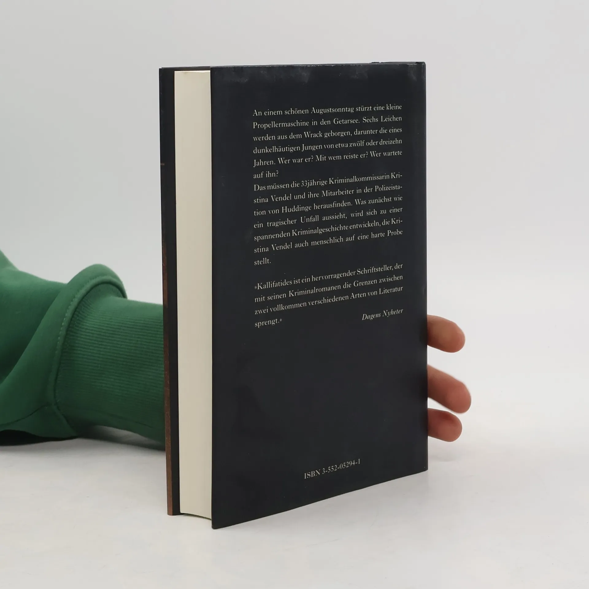 An einem schönen Augustsonntag stürzt eine kleine Propellermaschine in den Getarsee. Sechs Leichen werden aus dem Wrack geborgen, darunter die eines dunkelhäutigen Jugen von etwa zwölf oder dreizehn Jahren. Wer war er? Wer wartete auf ihn? Das müssen die 33jährige Kriminalkommissarin Kristina Vendel und ihre Mitarbeiter in der Polizeistation von Huddinge herausfinden. Was zunächst wie ein tragischer Unfall aussieht, wird sich zu einer spannenden Kriminalgeschichte entwickeln, die Kristina Vendel auch menschlich auf eine harte Probe stellt.