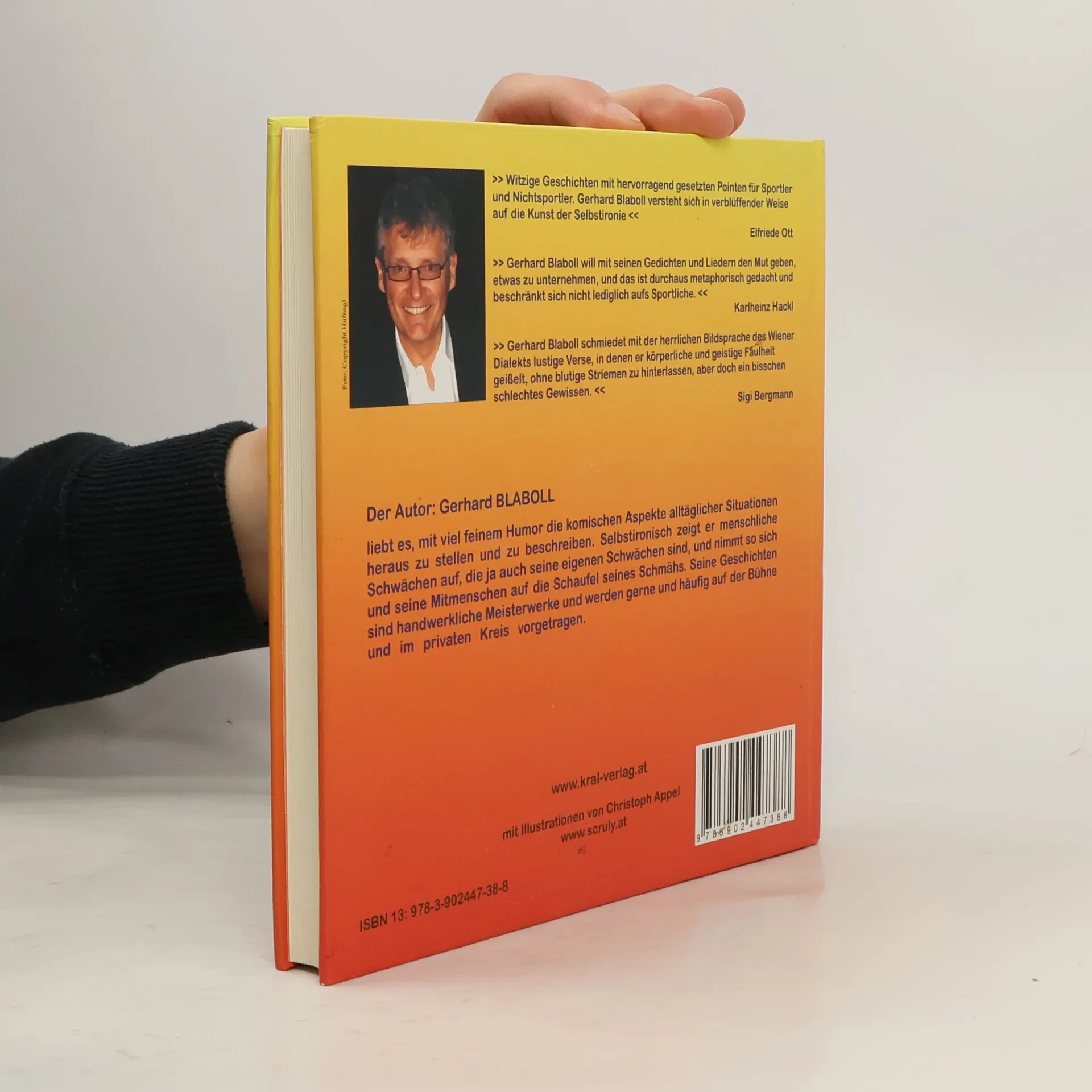 Nach dem vorjährigen Besteller „Von Kranken und Gsunden“ erscheint heuer seine neuestes Werk. In diesem Buch nimmt Gerhard Blaboll alle Sportler uns solche die sich für welche halten auf die Schaufel und bringt den Ehrgeiz der Sportwütigen gekonnt und witzig auf den Punkt.