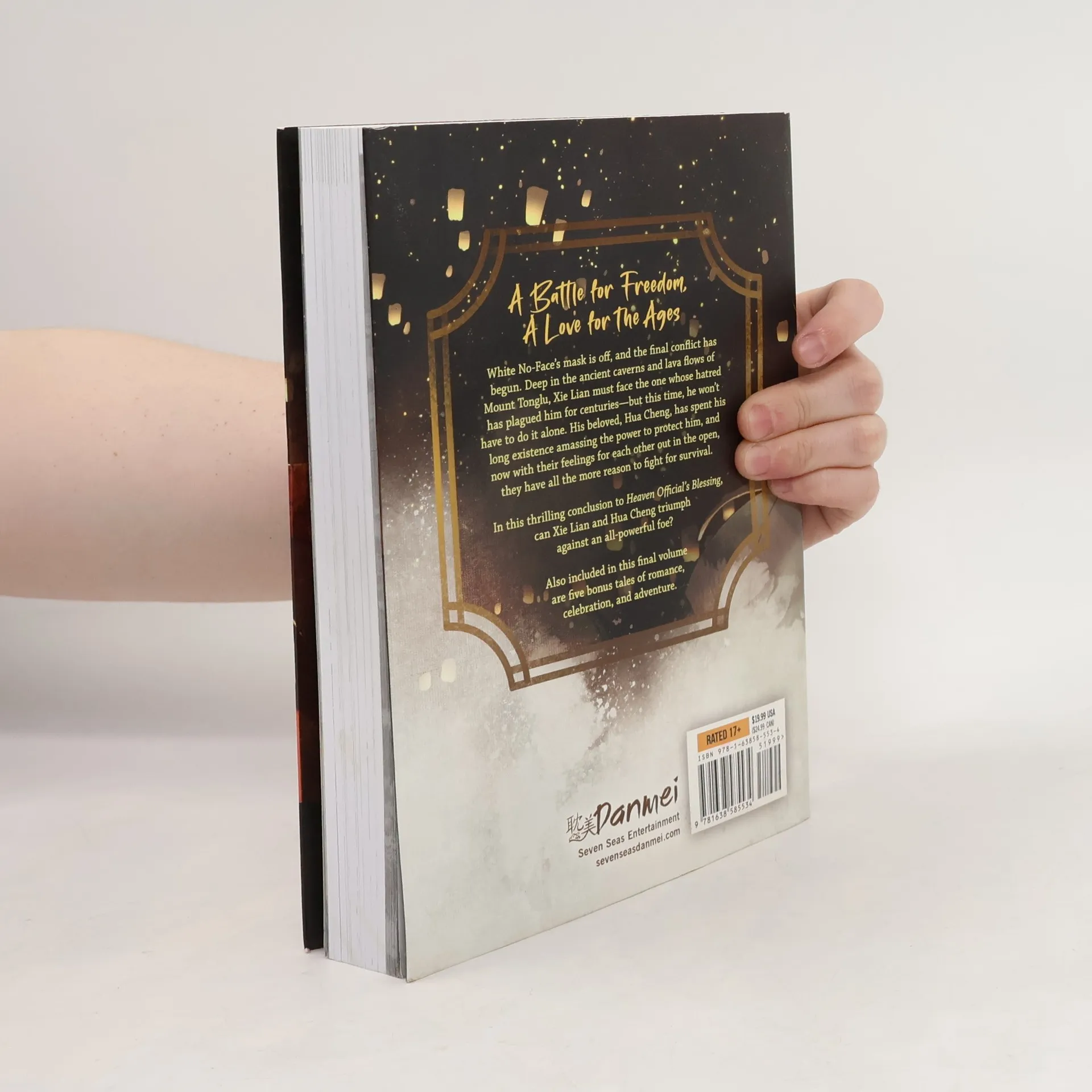 NEW YORK TIMES BEST SELLER! The blockbuster danmei/Boys' Love novels from China that inspired the animated series! In this final book (Volume 8), read the conclusion to this epic historical fantasy about a prince and the mysterious man by his side, in English for the very first time. Also includes bonus stories! White No-Face's mask is off, and the final conflict has begun. Deep in the ancient caverns and lava flows of Mount Tonglu, Xie Lian must face the one whose hatred has plagued him for centuries--but this time, he won't have to do it alone. His beloved, Hua Cheng, has spent his long existence amassing the power to protect him, and now with their feelings for each other out in the open, they have all the more reason to fight for survival. In this thrilling conclusion to Heaven Official's Blessing, can Xie Lian and Hua Cheng triumph against an all-powerful foe? Also included in this final volume are five bonus tales of romance, celebration, and adventure.