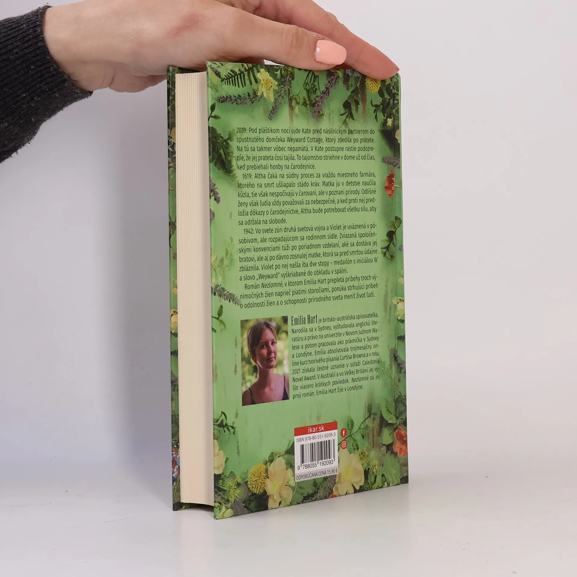 Strhujúci príbeh troch silných žien. 2019: Pod pláštikom tmy ujde Kate pred násilníckym partnerom do spustnutého domčeka Weyward Cottage, ktorý zdedila po pratete. Na tú sa takmer vôbec nepamätá. V Kate postupne rastie podozrenie, že jej prateta čosi tajila. To tajomstvo striehne v dome už od sedemnásteho storočia, keď prebiehali neslávne známe honby na čarodejnice. 1619: Altha čaká na súdny proces pre vraždu miestneho farmára, ktorého na smrť ušliapalo stádo kráv. Matka ju v detstve naučila kúzla, tie však nespočívajú v čarovaní, ale v hlbokom poznaní prírody. Odlišné ženy sa však vždy považovali za nebezpečné, a keď proti nej predložia dôkazy o čarodejníctve, Altha si uvedomí, že bude potrebovať všetku svoju silu, aby sa udržala na slobode. 1942: Vo svete zúri druhá svetová vojna a Violet je uväznená v pôsobivom, ale rozpadajúcom sa rodinnom sídle. Zviazaná spoločenskými konvenciami túži po poriadnom vzdelaní, aké sa dostáva jej bratovi, ale aj po dávno zosnulej matke, ktorá sa pred smrťou údajne zbláznila. Violet po nej našla iba dve stopy – medailón s iniciálou W a slovo „Weyward“ vyškriabané do obkladu v spálni. Román Nezlomné, v ktorom Emilia Hart prepletá príbehy troch výnimočných žien naprieč piatimi storočiami, ponúka strhujúci príbeh, svedčiaci o odolnosti žien a o schopnosti prírodného sveta meniť život ľudí.