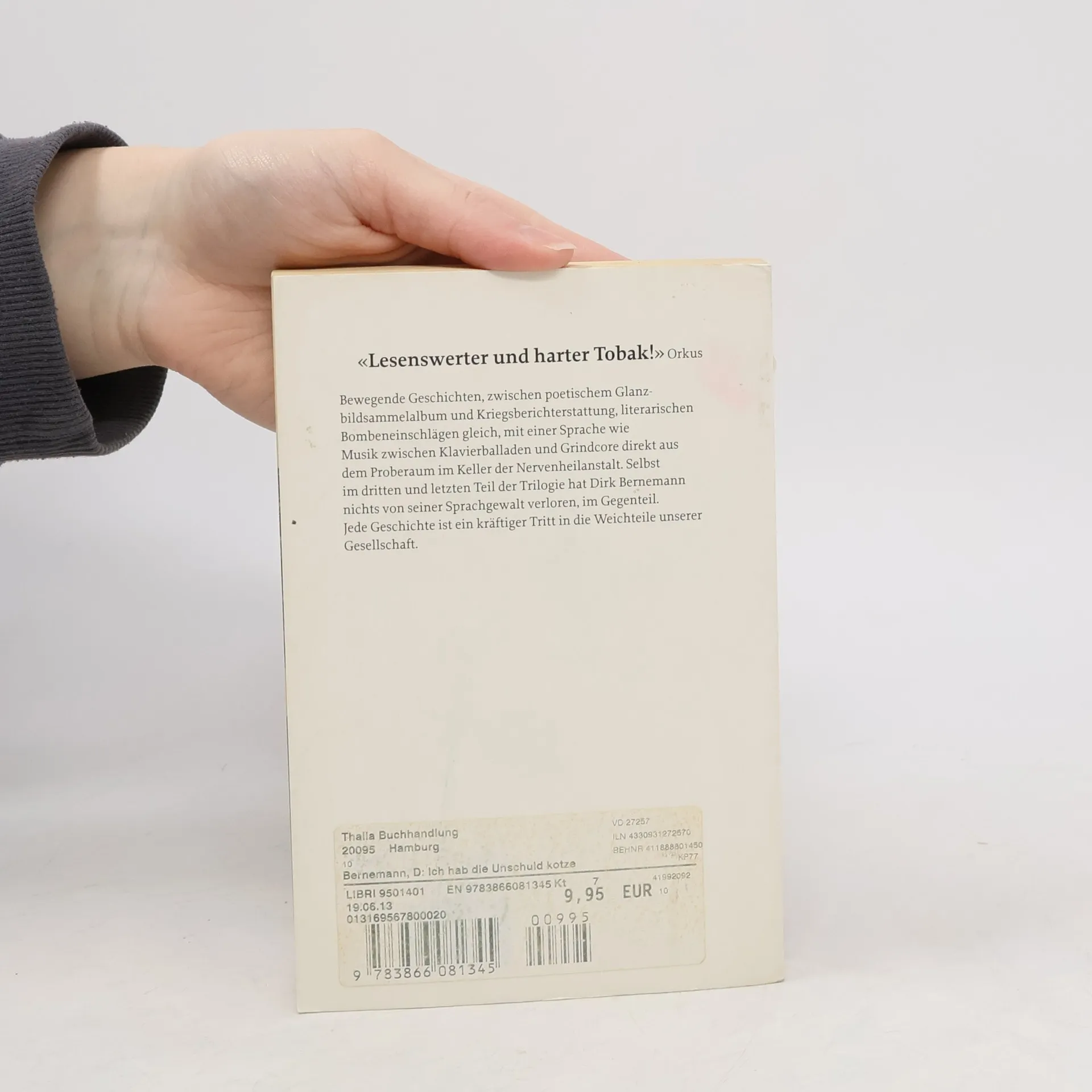 Bewegende Geschichten, zwischen poetischem Glanzbildsammelalbum und Kriegsberichterstattung, literarischen Bombeneinschlägen gleich, mit einer Sprache wie Musik zwischen Klavierballaden und Grindcore direkt aus dem Proberaum im Keller der Nervenheilanstalt. Selbst im dritten und letzten Teil der Trilogie hat Dirk Bernemann nichts von seiner Sprachgewalt verloren, im Gegenteil. Jede Geschichte ist ein kräftiger Tritt in die Weichteile unserer Gesellschaft.