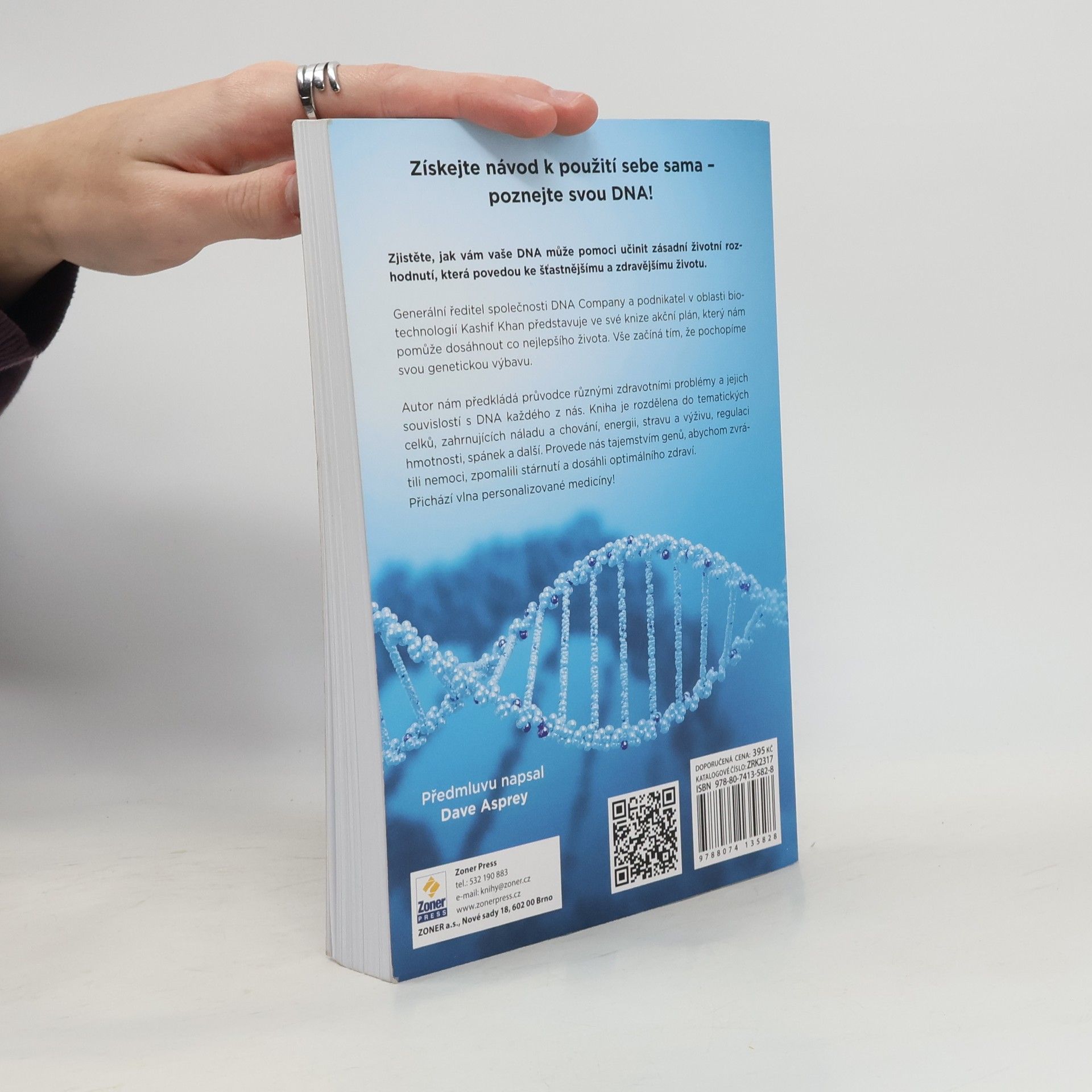 Naučte se, jak získat návod k použití sebe sama! Znalost vašeho genomu vám může pomoci učinit zásadní rozhodnutí, která povedou k šťastnějšímu a zdravějšímu životu. Přichází vlna personalizované medicíny! Kashif Khan, podnikatel v oblasti biotechnologií, představuje akční plán pro dosažení co nejlepšího života. Vše začíná pochopením vaší genetické výbavy, neboť zdravotní problémy často souvisejí s naší specifickou DNA. Autor se v kapitolách zaměřuje na témata jako nálada, energie, strava, regulace hmotnosti, spánek a stárnutí, a hledá odpovědi na otázky, které si klademe s přibývajícím věkem. Proč se mi nedaří dosáhnout vyrýsovaných svalů, když cvičím stejně jako můj kolega? Jak spánek ovlivňuje mou náchylnost k nemocem? Mohou moje děti žít zdravěji a déle než já? Kashif Khan sdílí svou osobní cestu k překonání genetického dědictví a otevřeně popisuje své zdravotní problémy. V knize najdete užitečná doporučení pro zdravější život – jaké potraviny jíst, jak cvičit a jak optimalizovat výkonnost, abyste předcházeli nemocem a zpomalili proces stárnutí.