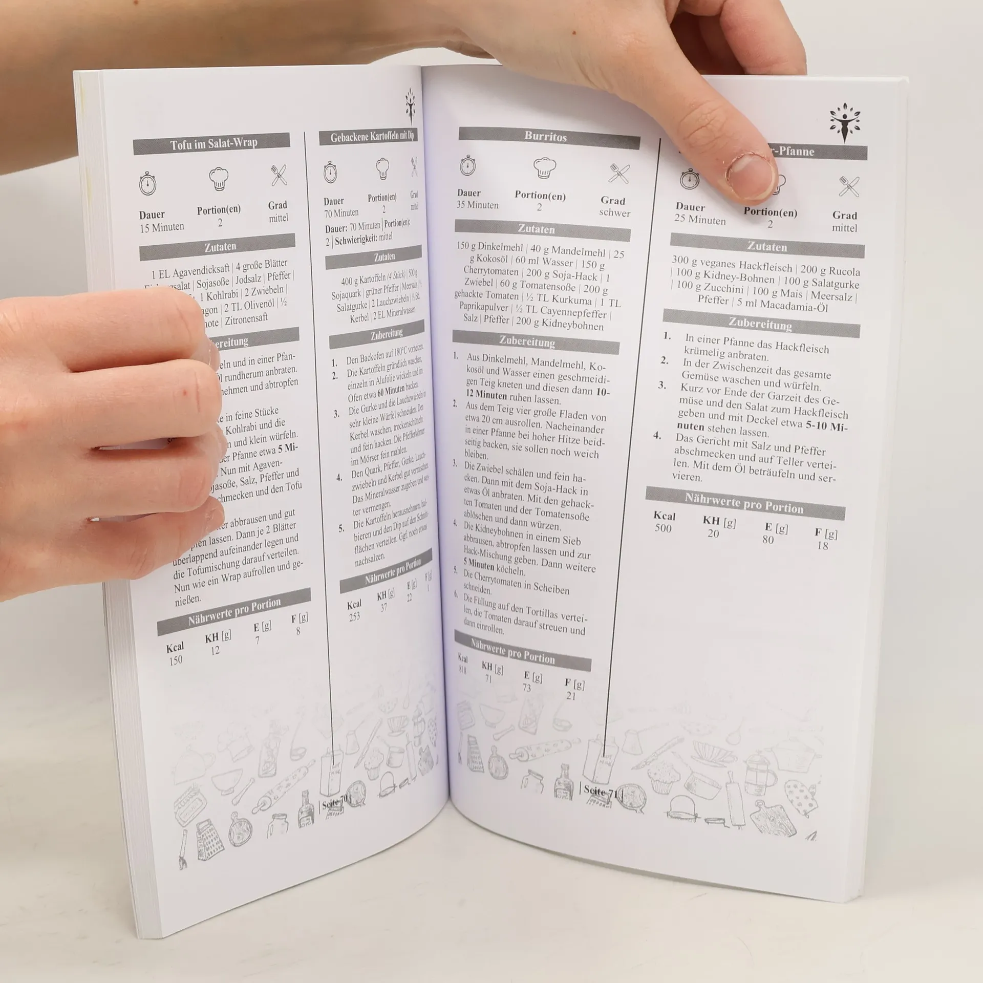 Das Fitnesskochbuch bietet 125 vegane Rezepte für den Muskelaufbau und enthält wertvolle Tipps zur veganen Sporternährung und Bodybuilding-Ernährung, ergänzt durch Nährwertangaben und einen Ernährungsplan. Neben einer Vielzahl an Rezepten finden Sie einen umfangreichen Ratgeber, der wichtige Informationen zum Thema Muskelaufbau mit veganer Ernährung bereitstellt. Sie lernen, wie Sie Ihren Grundumsatz berechnen und wie Sie mit veganer Kost Muskulatur aufbauen können. Der 10-tägige Ernährungsplan hilft Ihnen, die Tipps und Ratschläge praktisch umzusetzen. Die Rezepte sind in verschiedenen Kategorien angeordnet und einfach nachzukochen, von schnellen Frühstücken bis hin zu kreativen Nachspeisen. Alle Rezepte sind verständlich geschrieben und bieten Nährwertangaben, sodass jeder mit Freude und Genuss kochen kann. Das Buch behandelt zudem, wie man Muskeln richtig aufbaut, die Vorteile der veganen Ernährung, die biologische Wertigkeit von Lebensmitteln, die wichtigsten Nährstoffe, die 5 Ebenen der veganen Küche und die Auswahl der richtigen Lebensmittel, inklusive Einkaufslisten. Mit über 120 Rezepten und einem abgestimmten 10-tägigen Ernährungsplan ist dieses Buch ideal für alle, die ihre Fitnessziele erreichen möchten. Sichern Sie sich jetzt Ihr persönliches Exemplar!