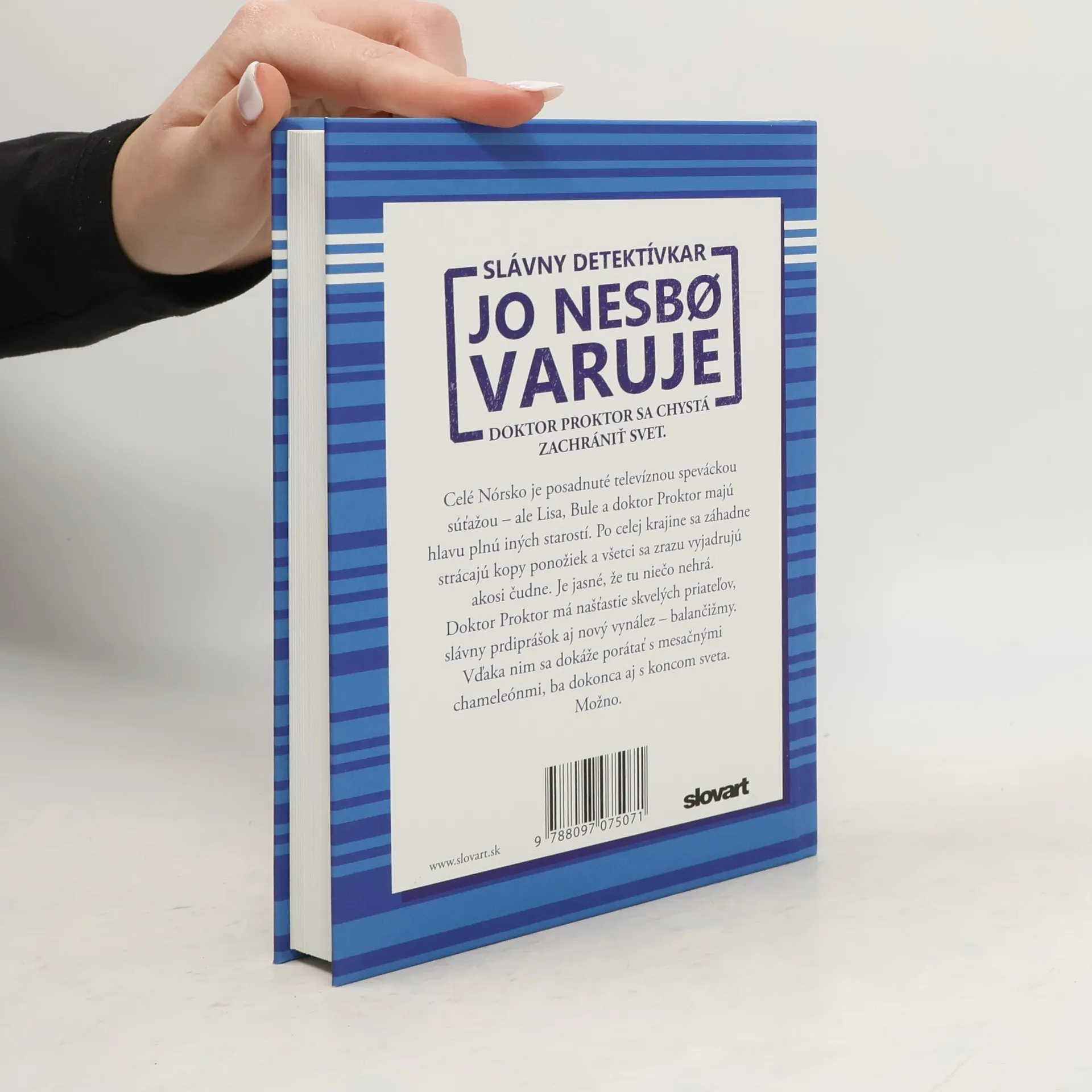 Jo Nesbo a doktor Proktor majú pre vás prichystanú ďalšiu sériu neuveriteľne šialených dobrodružstiev. Pripravte sa na inváziu mimozemšťanov, pravdu o tom, ako naozaj miznú ponožky v práčkach, na hada škrtiča v kanalizácii, na pravého žabieho muža a nie úplne pravých paviánov, na zákerné vafľovače aj nie úplne doladené balančné topánky. A navyše si dávajte pozor na sedemnohého peruánskeho vysávača, na kráľa v exile i na koniec sveta. Možno.