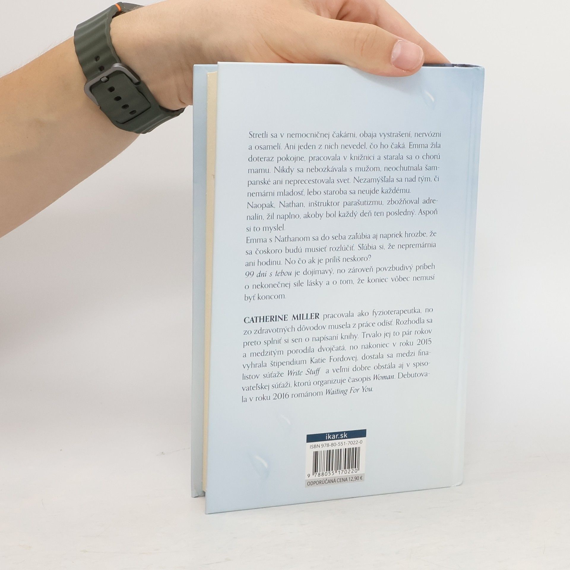 Stretli sa v nemocničnej čakárni, obaja vystrašení, nervózni a osamelí. Ani jeden z nich nevedel, čo ho čaká. Emma žila doteraz pokojne, pracovala v knižnici a starala sa o chorú mamu. Nikdy sa nebozkávala s mužom, neochutnala šampanské, ani neprecestovala svet. Nezamýšľala sa nad tým, či nemárni mladosť, lebo staroba sa neujde každému. Naopak Nathan, inštruktor parašutizmu, zbožňoval adrenalín, žil naplno, ako by bol každý deň ten posledný. Aspoň si to myslel. Emma s Nathanom sa do seba zaľúbia aj napriek hrozbe, že sa čoskoro budú musieť rozlúčiť. Sľúbia si, že nepremárnia ani hodinu. No čo ak je príliš neskoro? 99 dní s tebou je dojímavý, no zároveň povzbudivý príbeh o nekonečnej sile lásky a o tom, že koniec vôbec nemusí byť koncom.