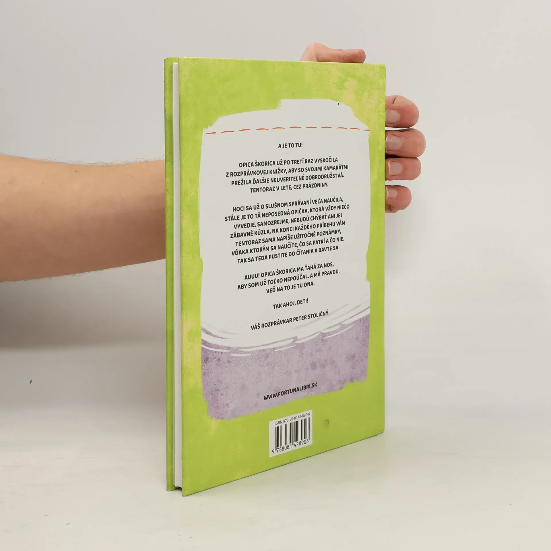 A je to tu! Opica Škorica už po tretí raz vyskočila z rozprávkovej knižky, aby so svojimi kamarátmi prežila ďalšie neuveriteľné dobrodružstvá. Tentoraz v lete, cez prázdniny. Hoci sa už o slušnom správaní veľa naučila, stále je to tá neposedná opička, ktorá vždy niečo vyvedie. Samozrejme, nebudú chýbať ani jej zábavné kúzla. Na konci každého príbehu vám tentoraz sama napíše užitočné poznámky, vďaka ktorým sa naučíte, čo sa patrí a čo nie. Tak sa teda pustite do čítania a bavte sa. Auuu! Opica Škorica ma ťahá za nos, aby som už toľko nepoúčal. A má pravdu. Veď na to je tu ona. Tak ahoj, deti!