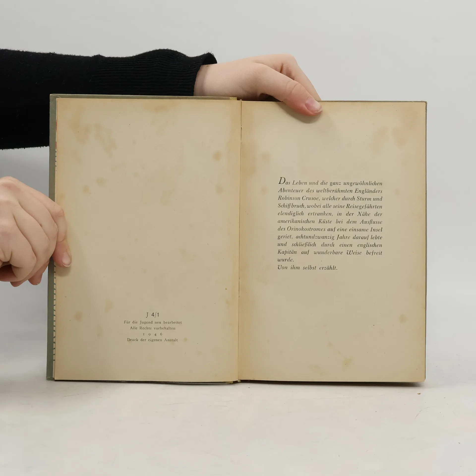 »Das Leben und die seltsamen Abenteuer des Robinson Crusoe, eines Seemanns aus York. Welcher achtundzwanzig Jahre ganz allein auf einer unbewohnten Insel vor der amerikanischen Küste, nahe der Mündung des großen Orinoco lebte, wohin er nach einem Schiffbruch, bei dem die ganze Besatzung außer ihm selbst ums Leben kam, verschlagen wurde. Nebst dem Bericht wie er auf wundersame Weise durch Piraten gerettet wurde. Geschrieben von ihm selbst.« So lautet der volle Titel des Buches, dessen wichtigste Begebenheiten hier in Auswahl dargeboten werden. Gekürzte Ausgabe