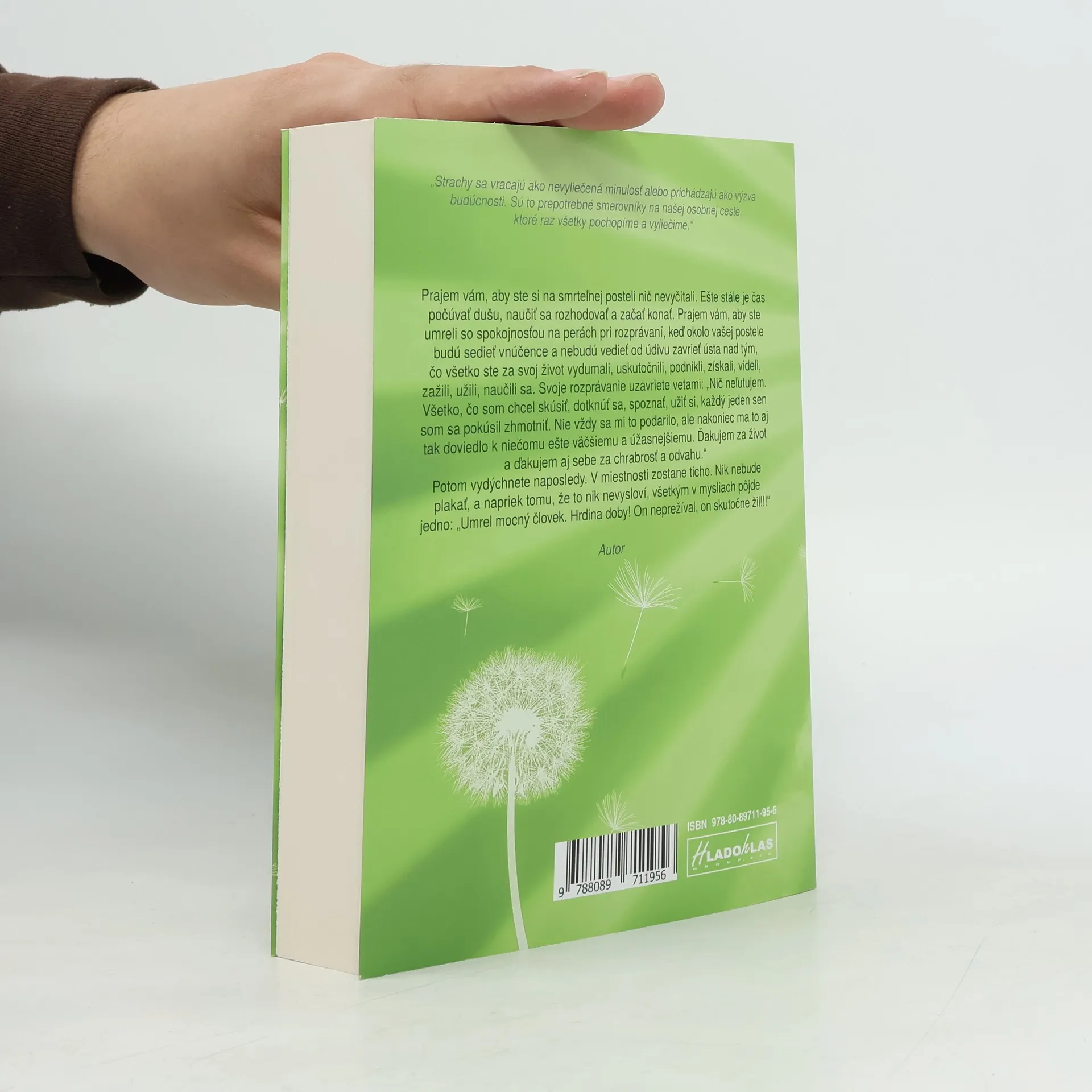 Prajem vám, aby ste si na smrteľnej posteli nič nevyčítali. Ešte stále je čas počúvať dušu, naučiť sa rozhodovať a začať konať. Prajem vám, aby ste umreli so spokojnosťou na perách pri rozprávaní, keď okolo vašej postele budú sedieť vnúčence a nebudú vedieť od údivu zavrieť ústa nad tým, čo všetko ste za svoj život vydumali, uskutočnili, podnikli, získali, videli, zažili, užili, naučili sa. Svoje rozprávanie uzavriete vetami: „Nič neľutujem. Všetko, čo som chcel skúsiť, dotknúť sa, spoznať, užiť si, každý jeden sen som sa pokúsil zhmotniť. Nie vždy sa mi to podarilo, ale nakoniec ma to aj tak doviedlo k niečomu ešte väčšiemu a úžasnejšiemu. Ďakujem za život a ďakujem aj sebe za chrabrosť a odvahu.“ Potom vydýchnete naposledy. V miestnosti zostane ticho. Nik nebude plakať a napriek tomu, že to nik nevysloví, všetkým v mysliach pôjde jedno: „Umrel mocný človek. Hrdina doby! On neprežíval, on skutočne žil!!!“ Autor