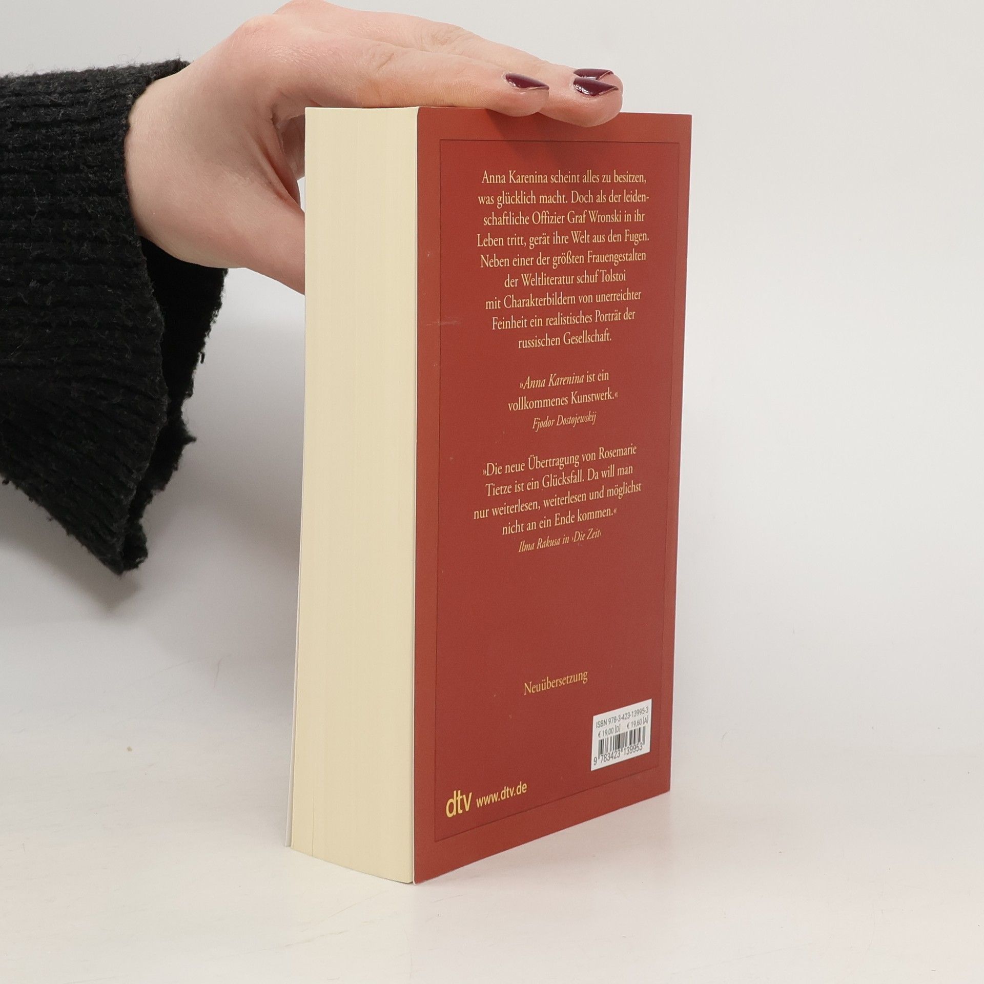 Tolstois Meisterwerk in Neuübersetzung – erstmals im Taschenbuch bei dtv Anna Karenina scheint alles zu besitzen, was glücklich macht. Doch als der leidenschaftliche Offizier Graf Wronskij in ihr Leben tritt, gerät ihre Welt aus den Fugen. Sie muss ihrer bedingungslosen Liebe folgen – bis zum bitteren Ende. Tolstois berühmtes Werk gilt als sein künstlerisch vollkommenstes, mit Charakterbildern von unerreichter Feinheit, zugleich ist es ein unerbittliches Porträt der russischen Gesellschaft. Rosemarie Tietzes hochgelobte Neuübersetzung setzt neue Maßstäbe und lässt das eindrucksvolle Werk in neuem Glanz erstrahlen. • Paul-Celan-Preis 2010 für Rosemarie Tietze • Mit umfangreichem Anhang zu Leben und Werk des Autors