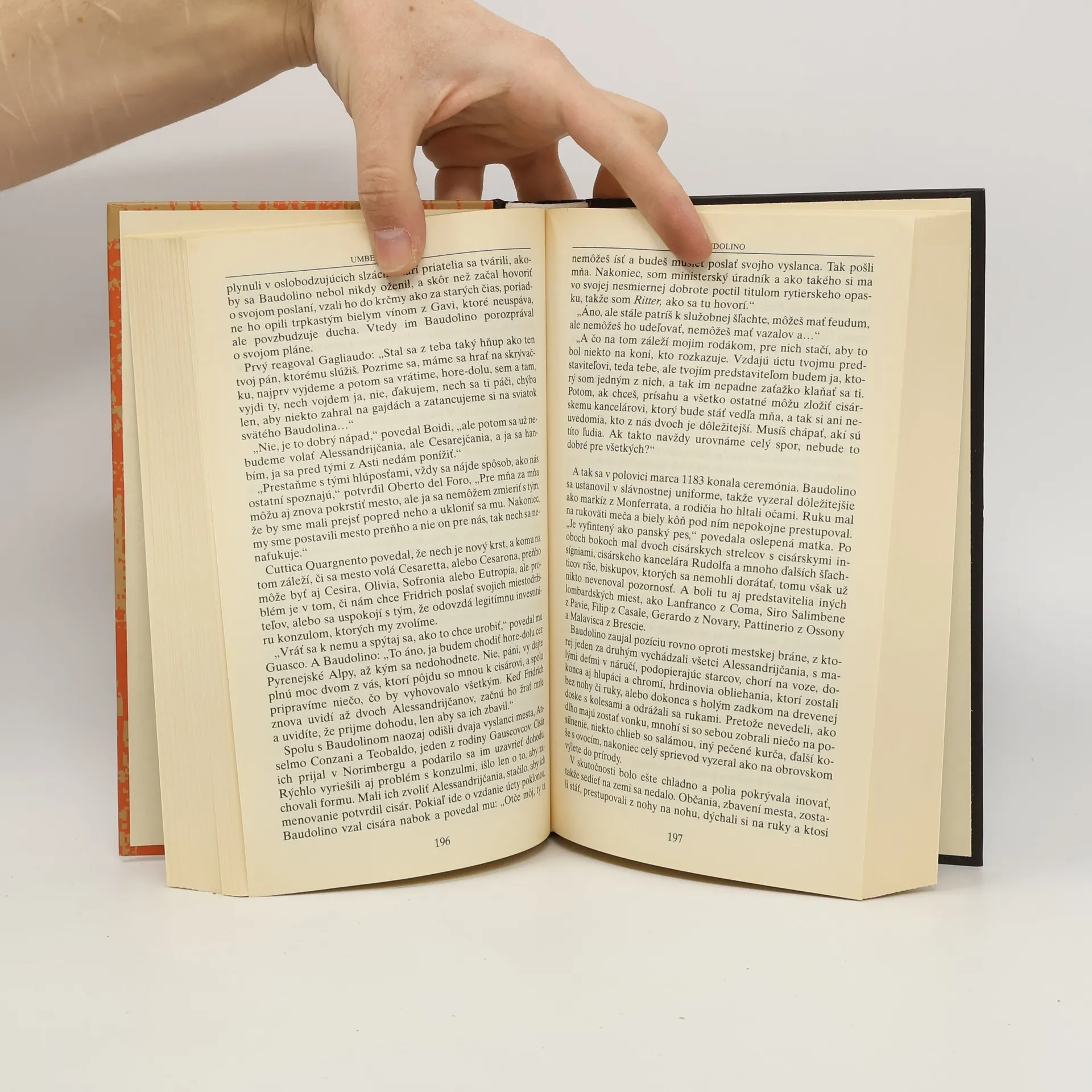Aj vo svojom ďalšom románe Baudolino zostal Umberto Eco (autor bestselleru Meno ruže) verný historickému žánru. Tentoraz píše rozprávanú kroniku. Zachytáva rozprávanie ľudového šibala Baudolina, ktorý diktuje byzantskému kronikárovi Nicetovi. Rozprávačom nie je vzdelanec, ako v ostatných Ecových knihách, ponorený do sveta kníh a rukopisov, ale veselý, ľahkovážny chlapec, syn sedliakov z dedinky v okolí Piemontu. Šťastné okolnosti ho zavedú na dvor cisára Fridricha II. Barbarossu, ktorého sprevádza na vojenských výpravách do Talianska a do Konštantínopolu, zúčastňuje sa na diplomatických poradách a svojimi chytrými a vtipnými nápadmi mu pomáha riešiť zložité štátnické situácie.
