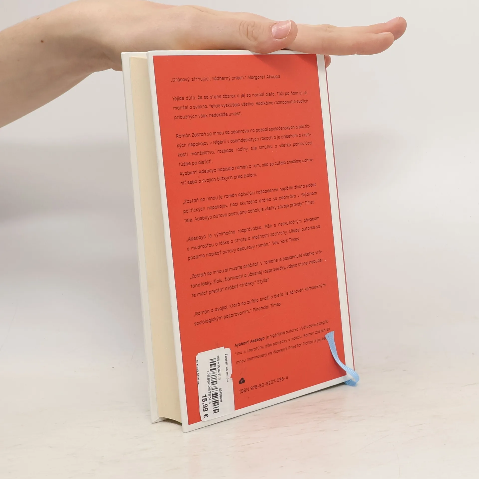 Yejide dúfa, že sa stane zázrak a jej sa narodí dieťa. Túži po ňom aj jej manžel a svokra. Yejide vyskúšala všetko. Radikálne rozhodnutie svojich príbuzných však nedokáže uniesť. Román Zostaň so mnou sa odohráva na pozadí spoločenských a politických nepokojov v Nigérii v osemdesiatych rokoch a je príbehom o krehkosti manželstva, rozpade rodiny, sile smútku a všetko pohlcujúcej túžbe po dieťati. Ayobami Adebayo napísala román o tom, ako sa zúfalo a niekedy ničivo snažíme uchrániť seba a svojich blízkych pred žiaľom. Ayóbámi Adébáyò je nigérijská autorka. Vyštudovala angličtinu a literatúru, píše poviedky a poéziu. Román Zostaň so mnou nominovaný na Women’s Prize for Fiction je jej debut.