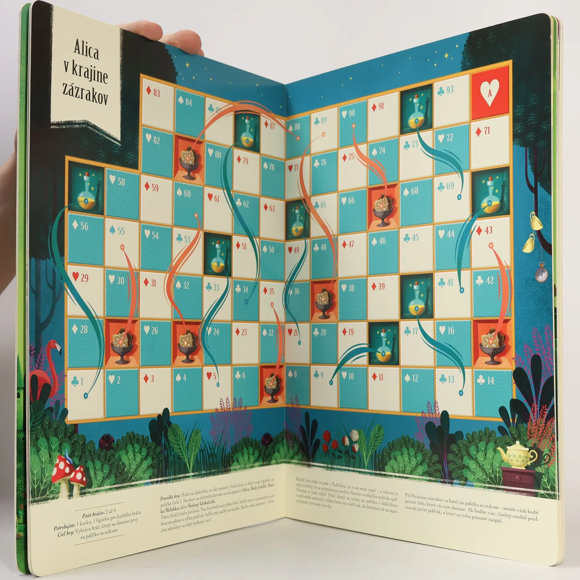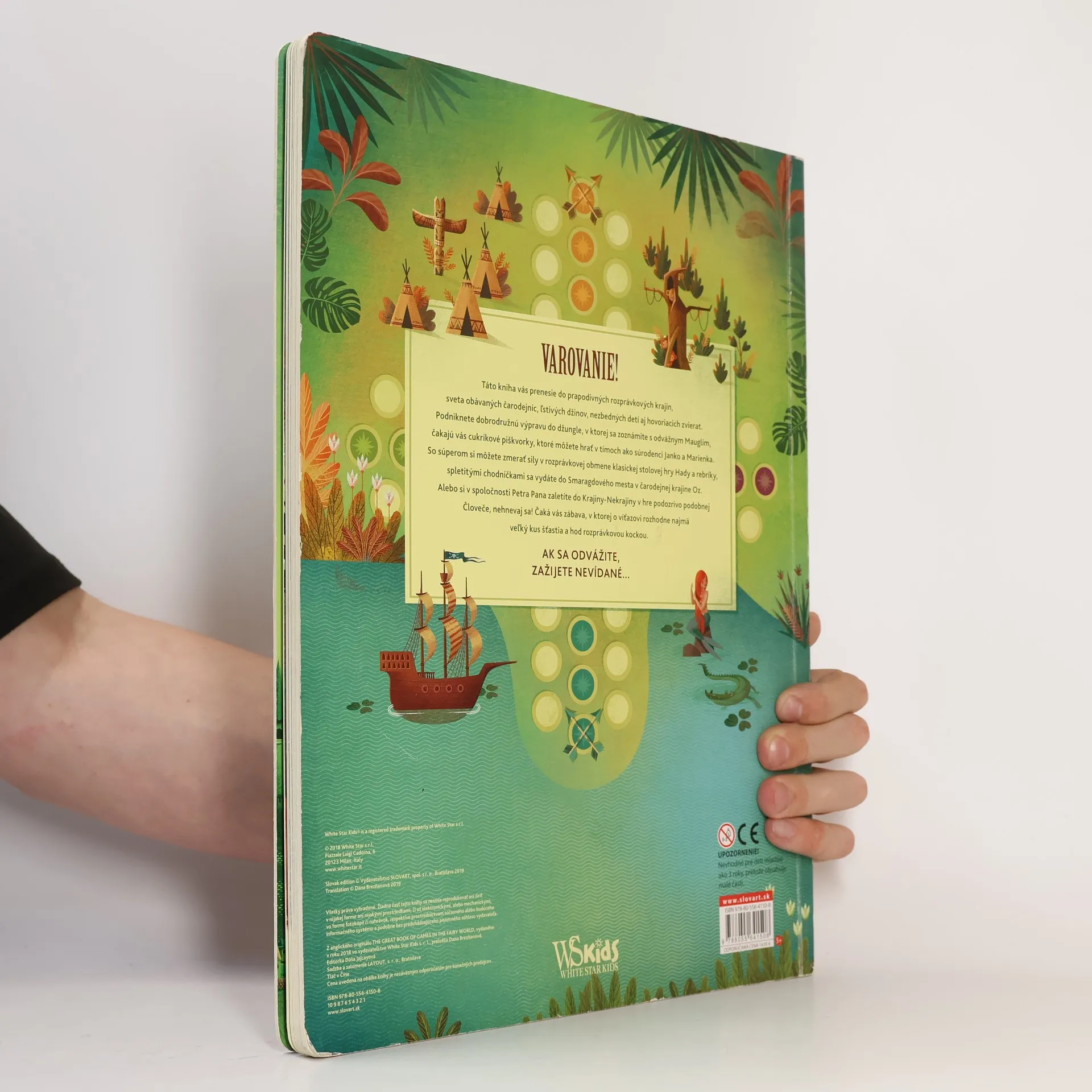 Táto kniha vás prenesie do prapodivných rozprávkových krajín, sveta obávaných čarodejníc, ľstivých džinov, nezbedných detí aj hovoriacich zvierat. Podniknete dobrodružnú výpravu do džungle, v ktorej sa zoznámite s odvážnym Mauglím, čakajú vás cukríkové piškvorky, ktoré môžete hrať v tímoch ako súrodenci Janko a Marienka, so súperom si môžete zmerať sily v rozprávkovej obmene klasickej stolovej hry Hady a rebríky, spletitými chodníčkami sa vydáte do Smaragdového mesta v čarodejnej krajine Oz, v spoločnosti Petra Pana si zaletíte do Krajiny-Nekrajiny v hre podozrivo podobnej Človeče, nehnevaj sa! Čaká vás zábava, v ktorej o víťazovi rozhodne najmä veľký kus šťastia a hod rozprávkovou kockou.