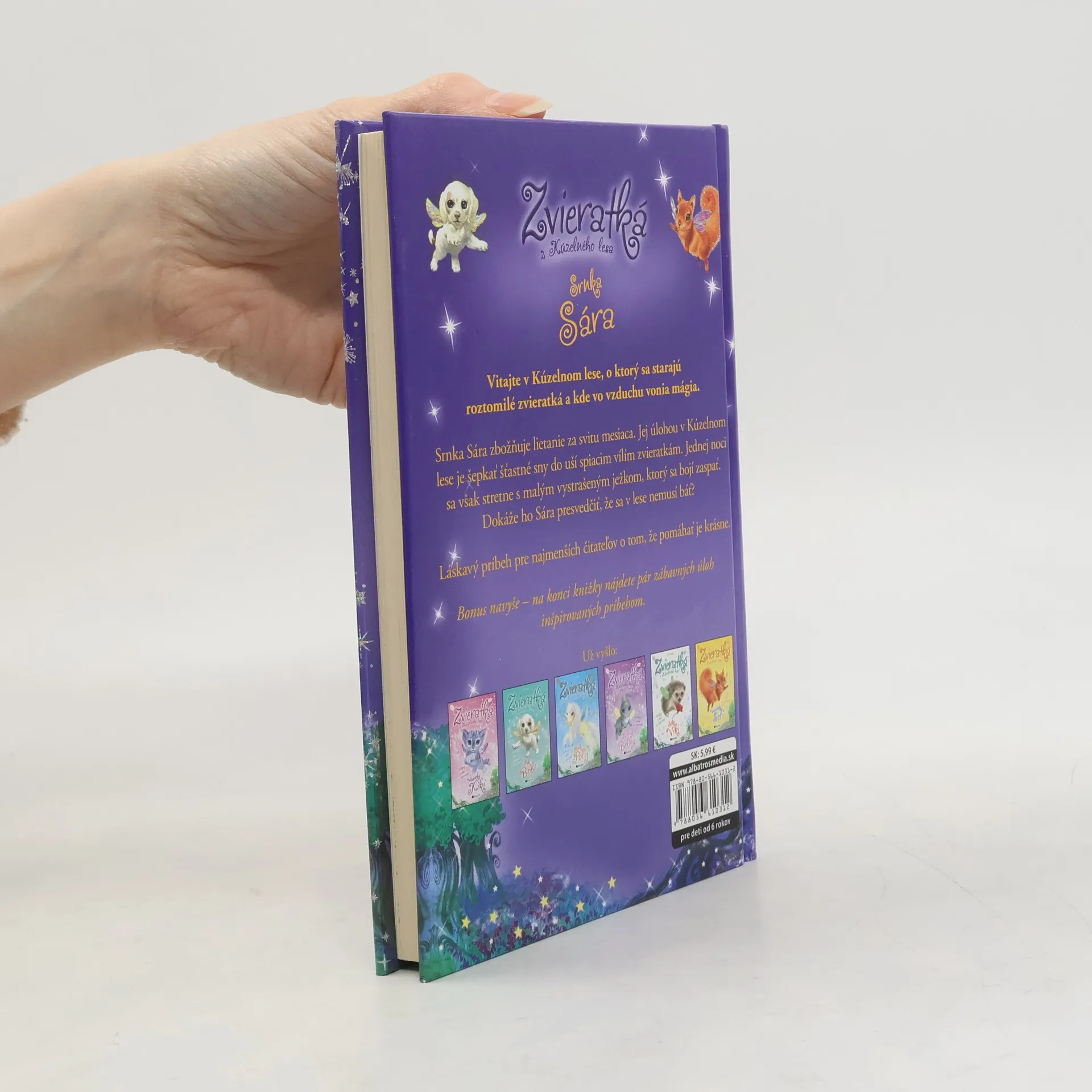 Vitajte v Kúzelnom lese, o ktorý sa starajú roztomilé zvieratká a kde vo vzduchu vonia mágia. Srnka Sára zbožňuje lietanie za svitu mesiaca. Jej úlohou v Kúzelnom lese je šepkať šťastné sny do uší spiacim vílím zvieratkám. Jednej noci sa však stretne s malým vystrašeným ježkom, ktorý sa bojí zaspať. Dokáže ho Sára presvedčiť, že sa v lese nemusí báť? Láskavý príbeh pre najmenších čitateľov o tom, že pomáhať je krásne. Bonus navyše – na konci knižky nájdete pár zábavných úloh inšpirovaných príbehom.