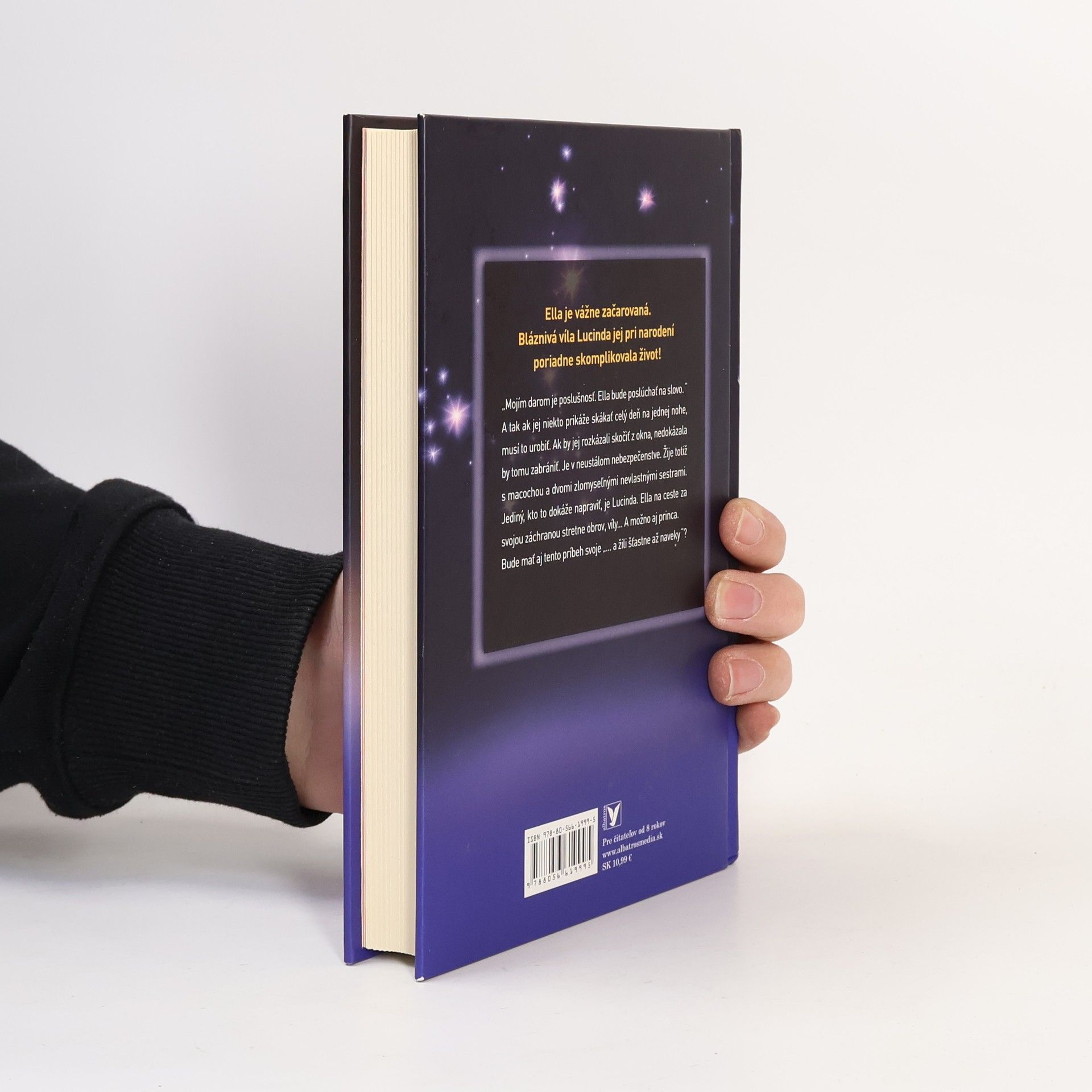 Ella je vážne začarovaná. Bláznivá víla Lucinda jej pri narodení poriadne skomplikovala život! A tak ak jej niekto prikáže skákať celý deň na jednej nohe, musí to urobiť. Ak by jej rozkázali skočiť z okna, nedokázala by tomu zabrániť. Je v neustálom nebezpečenstve. Žije totiž s macochou a dvomi zlomyseľnými nevlastnými sestrami. Jediný, kto to dokáže napraviť, je Lucinda. Ella na ceste za svojou záchranou stretne obrov, víly... A možno aj princa. Bude mať aj tento príbeh svoje „žili šťastne až naveky"?