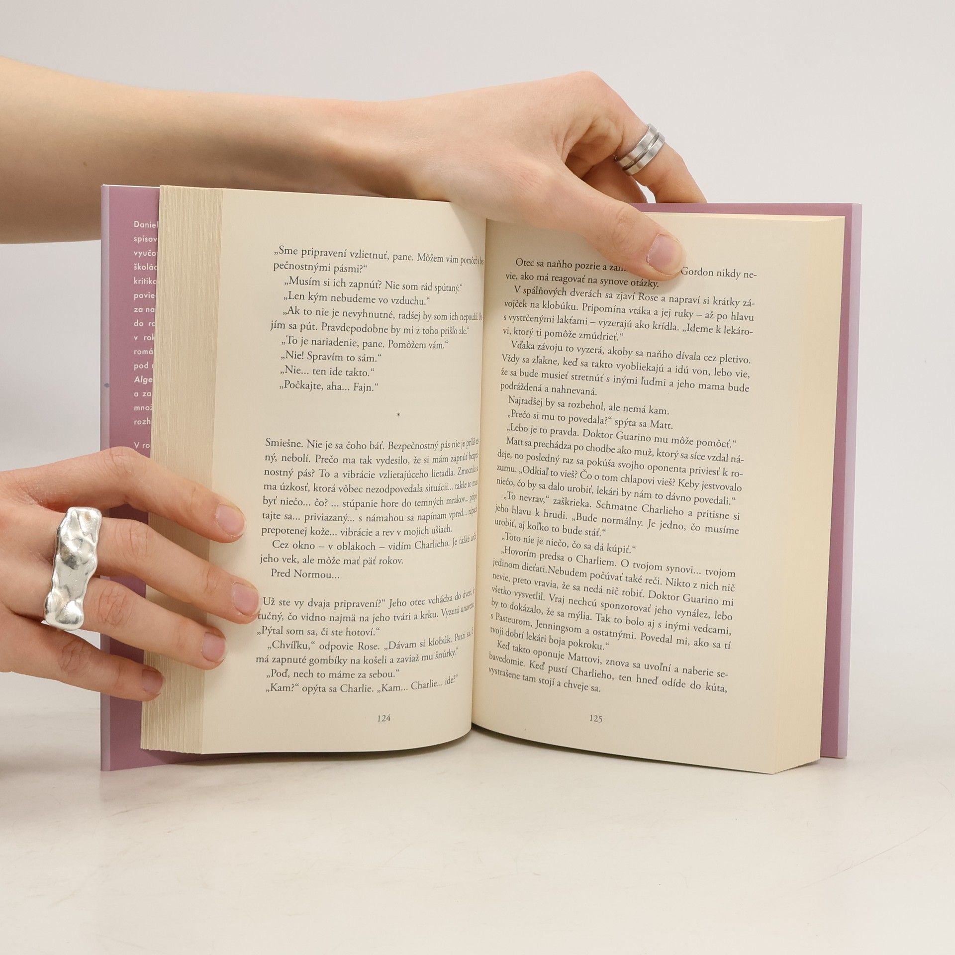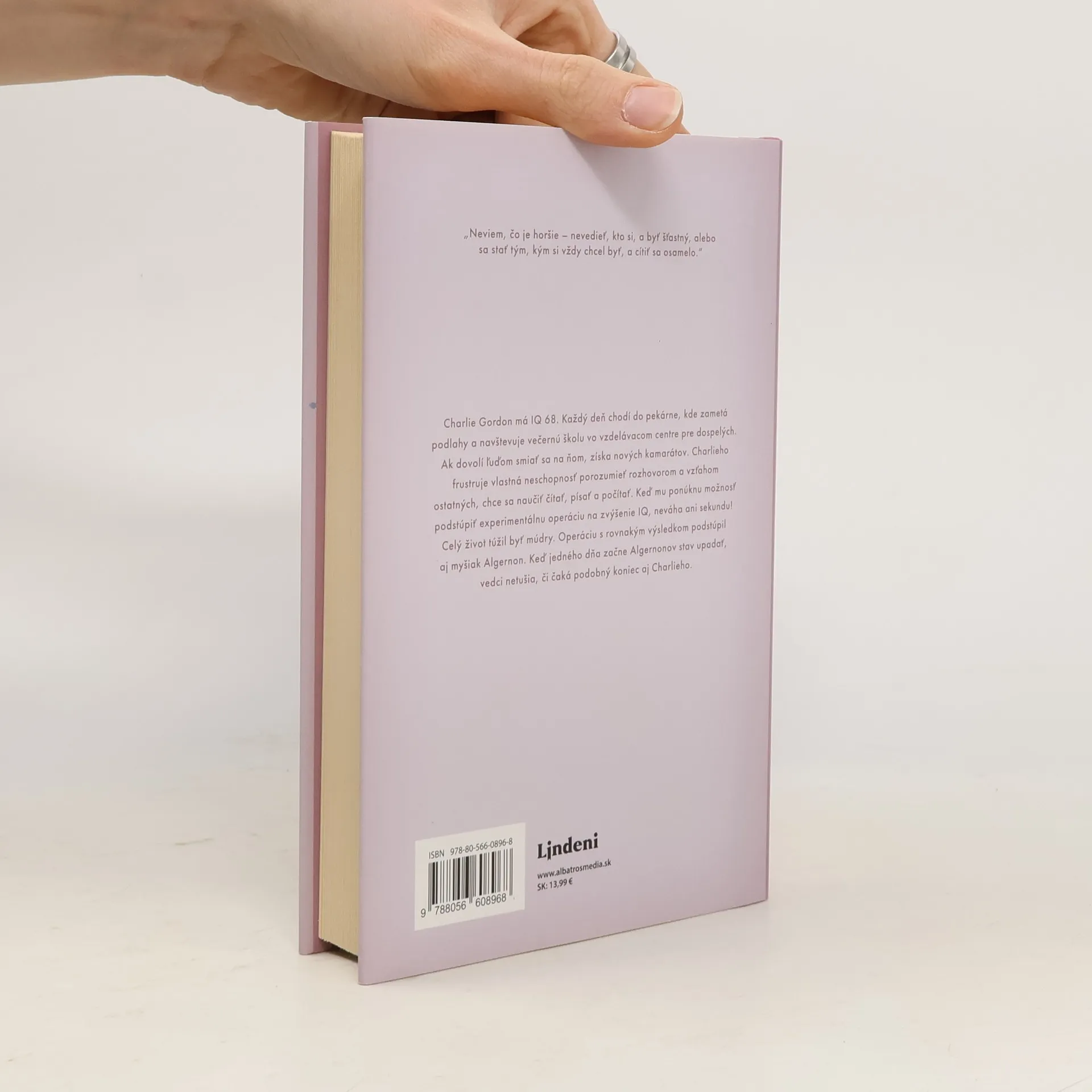 „Bojím sa. Nie života či smrti, ani ničoty, ale toho, že svoj čas premárnim, akoby som nikdy nebol.“ Charlie Gordon má IQ 68. Každý deň chodí do pekárne, kde zametá podlahy a navštevuje večernú školu vo vzdelávacom centre pre dospelých. Ak dovolí ľuďom smiať sa na ňom, získa nových kamarátov. Charlieho frustruje vlastná neschopnosť porozumieť rozhovorom a vzťahom ostatných, chce sa naučiť čítať, písať a počítať. Keď mu ponúknu možnosť podstúpiť experimentálnu operáciu na zvýšenie IQ, neváha ani sekundu! Celý život túžil bytť múdry. Rovnakú operáciu s rovnakým výsledkom podstúpil aj myšiak Algernon. Keď jedného dňa začne Algernonov stav upadať, vedci netušia, či čaká podobný koniec aj Charlieho. Kultový román druhej polovice 20. storočia, ktorý dnes právom považujeme za klasiku americkej literatúry.