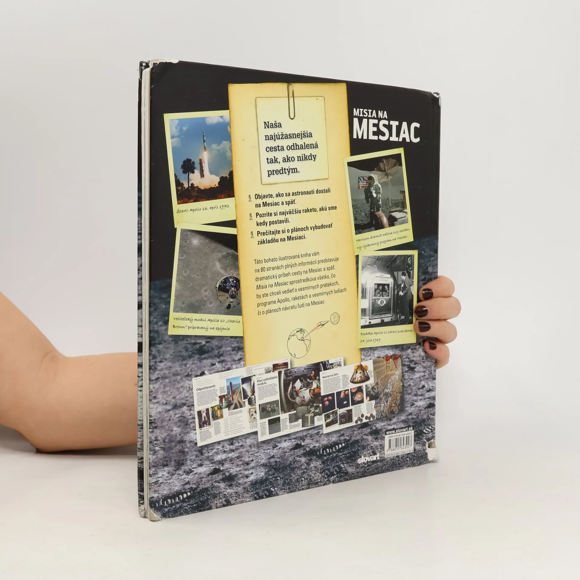 Táto bohato ilustrovaná kniha vám na 80 stranách plných informácií predstavuje dramatický príbeh cesty na Mesiac a späť. Misia na Mesiac sprostredkúva všetko, čo by ste chceli vedieť o vesmírnych pretekoch, programe Apollo, raketách a vesmírnych lodiach či o plánoch návratu ľudí na Mesiac.