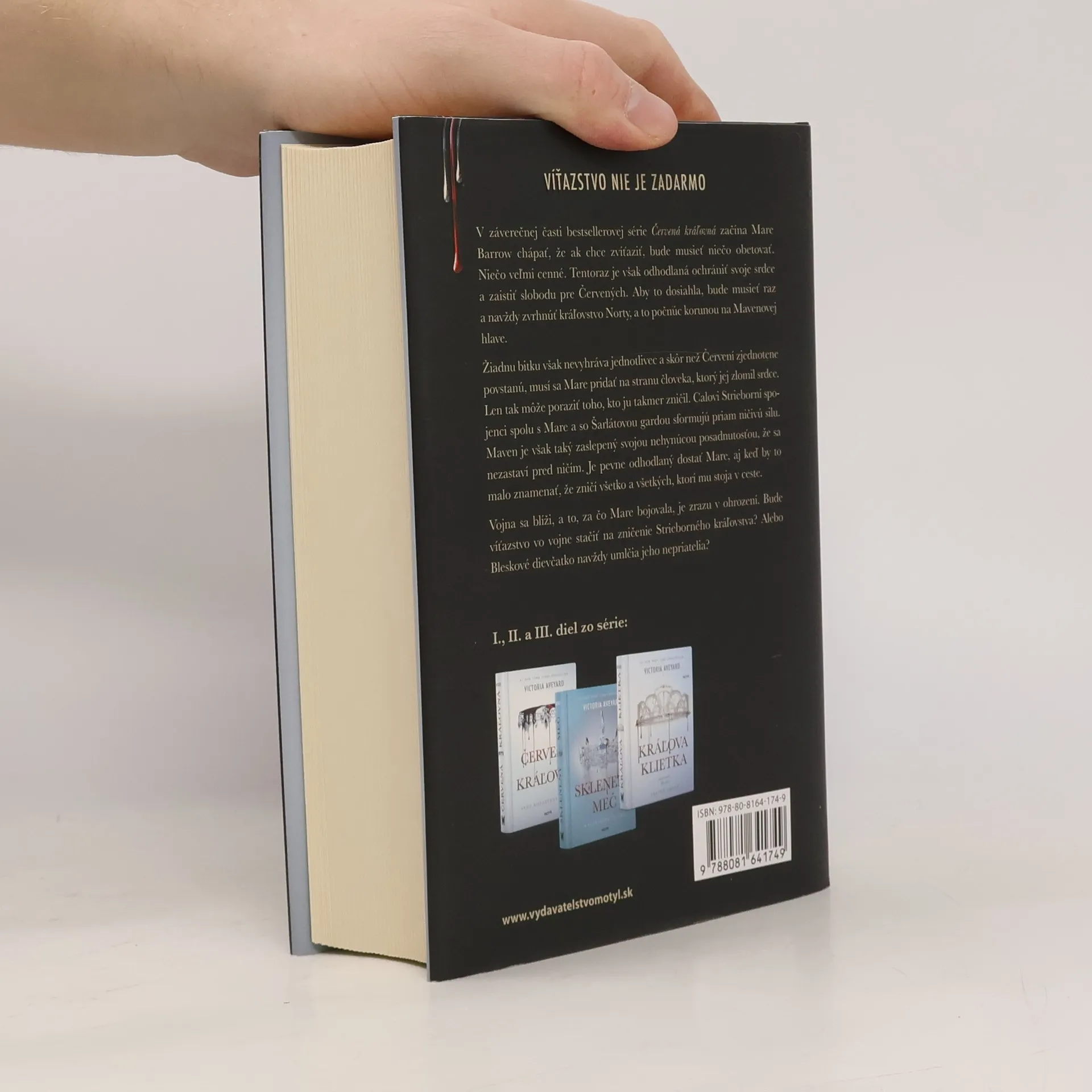 V záverečnej časti bestsellerovej série Červená kráľovná začína Mare Barrow chápať, že ak chce zvíťaziť, bude musieť niečo obetovať. Niečo veľmi cenné. Tentoraz je však odhodlaná ochrániť svoje srdce a zaistiť slobodu pre Červených. Aby to dosiahla, bude musieť raz a navždy zvrhnúť kráľovstvo Norty, a to počnúc korunou na Mavenovej hlave. Žiadnu bitku však nevyhráva jednotlivec a skôr než Červení zjednotene povstanú, musí sa Mare pridať na stranu človeka, ktorý jej zlomil srdce. Len tak môže poraziť toho, kto ju takmer zničil. Calovi Strieborní spojenci spolu s Mare a so Šarlátovou gardou sformujú priam ničivú silu. Maven je však taký zaslepený svojou nehynúcou posadnutosťou, že sa nezastaví pred ničím. Je pevne odhodlaný dostať Mare, aj keď by to malo znamenať, že zničí všetko a všetkých, ktorí mu stoja v ceste. Vojna sa blíži, a to, za čo Mare bojovala, je zrazu v ohrození. Bude víťazstvo vo vojne stačiť na zničenie Strieborného kráľovstva? Alebo Bleskové dievčatko navždy umlčia jeho nepriatelia?