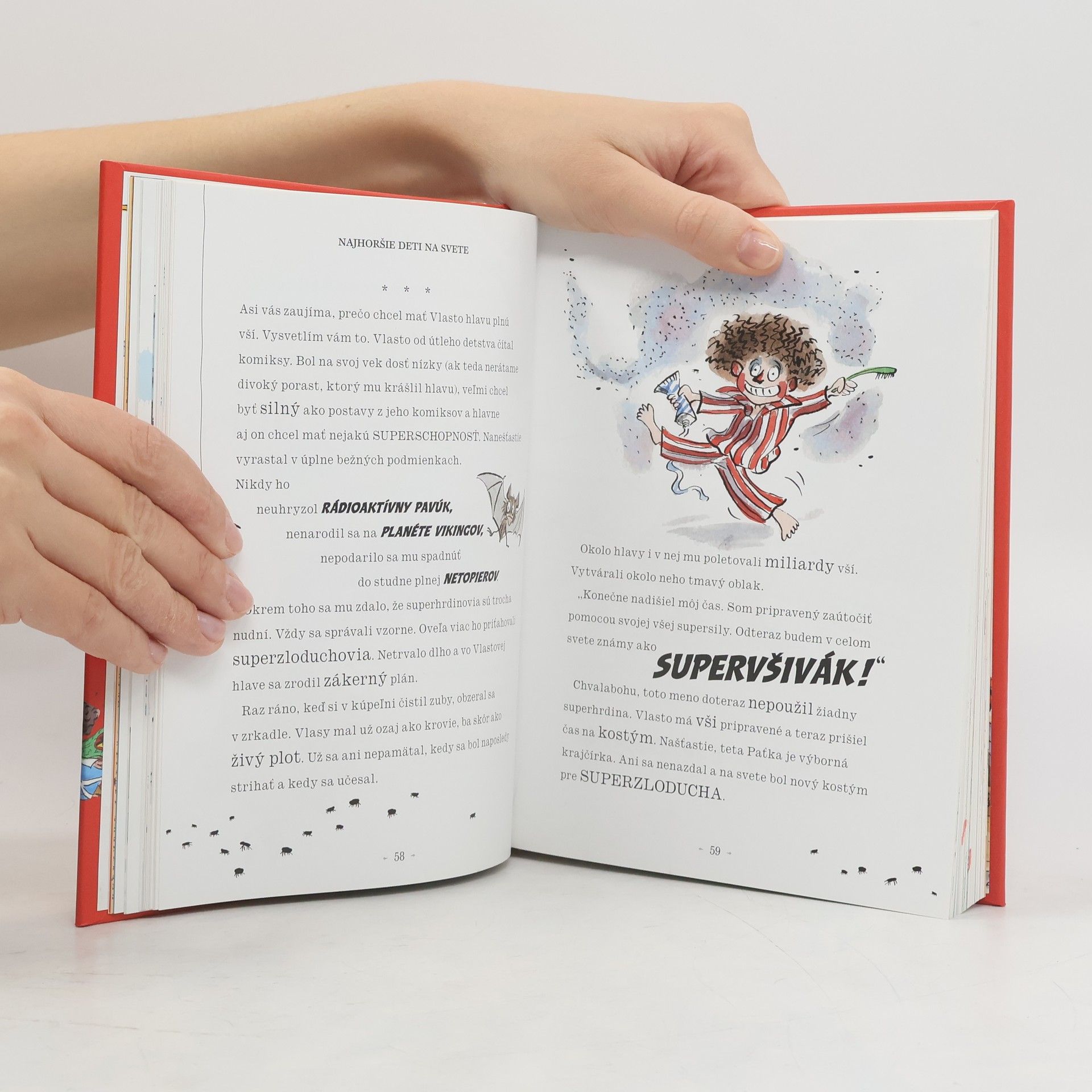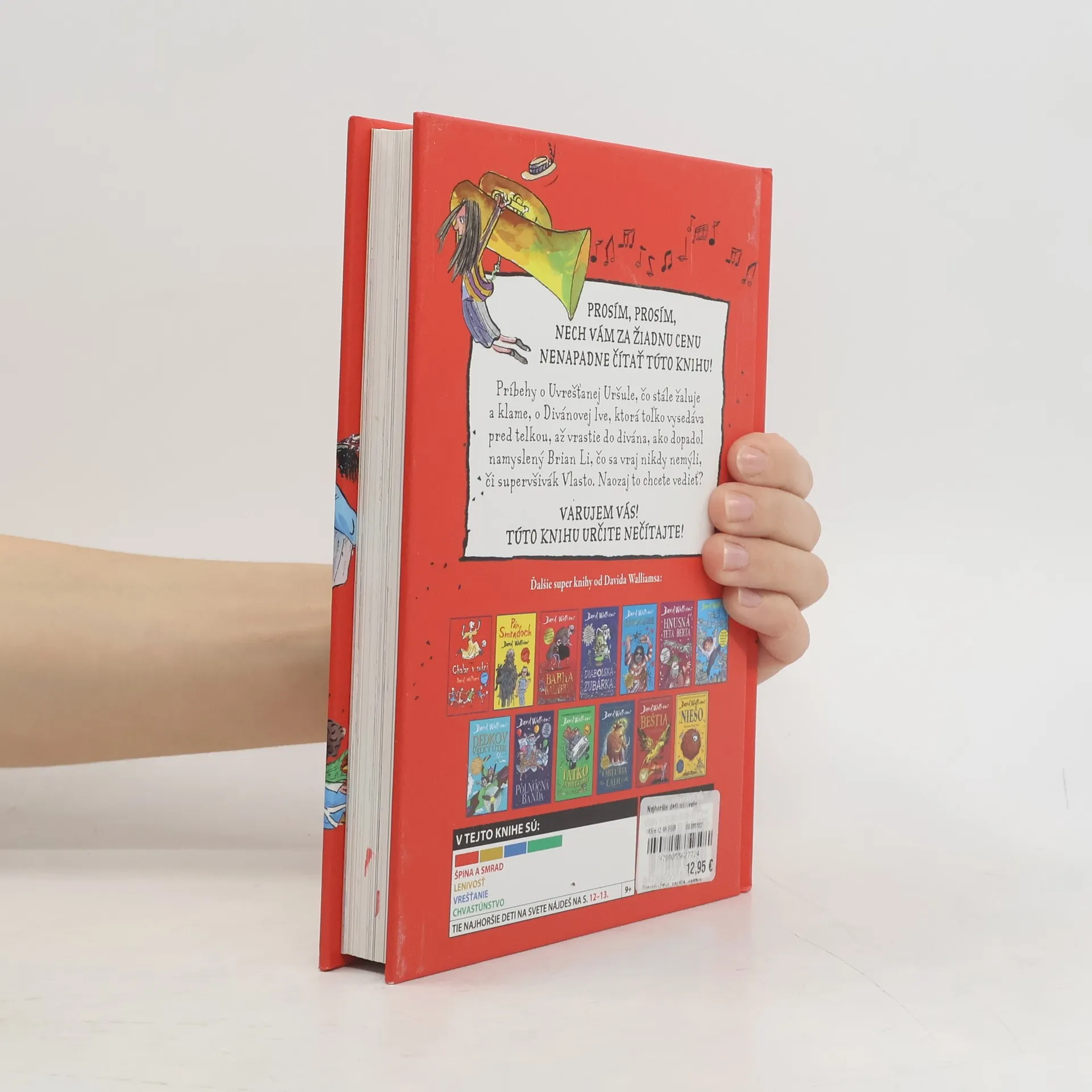 Ďalšia kniha od svetoznámeho britského komika a autora detských kníh Davida Walliamsa má na rozdiel od tých predošlých farebné ilustrácie a tvoria ju poviedky. Ako inak by mohla do detailov opísať tie najhoršie, ale naozaj naj, naj, najhoršie deti na svete. Ste pripravení? Máte dosť odvahy? Zvládnete stretnutie s desiatimi najhoršími deťmi na svete? Päť malých naničhodníkov a päť darebáčok. Divánová Iva – pozerá telku tak často, až prirastie k divánu. Slintoš Samo – slintá toľko, až sa na školskom výlete dostane do poriadnej kaše. Uvrešťaná Uršuľa je zas dievčisko, ktoré neustále fňuká a vymýšľa si. A, samozrejme, nesmieme zabudnúť aj na najobľúbenejšiu postavu, trafikanta Raja. Čítajte a inšpirujte sa! Komu sa kniha môže páčiť: Malým srandistom a lapajom, ktorí sa chcú nasmiať do popuku na tých najhorších deckách na celom svete.