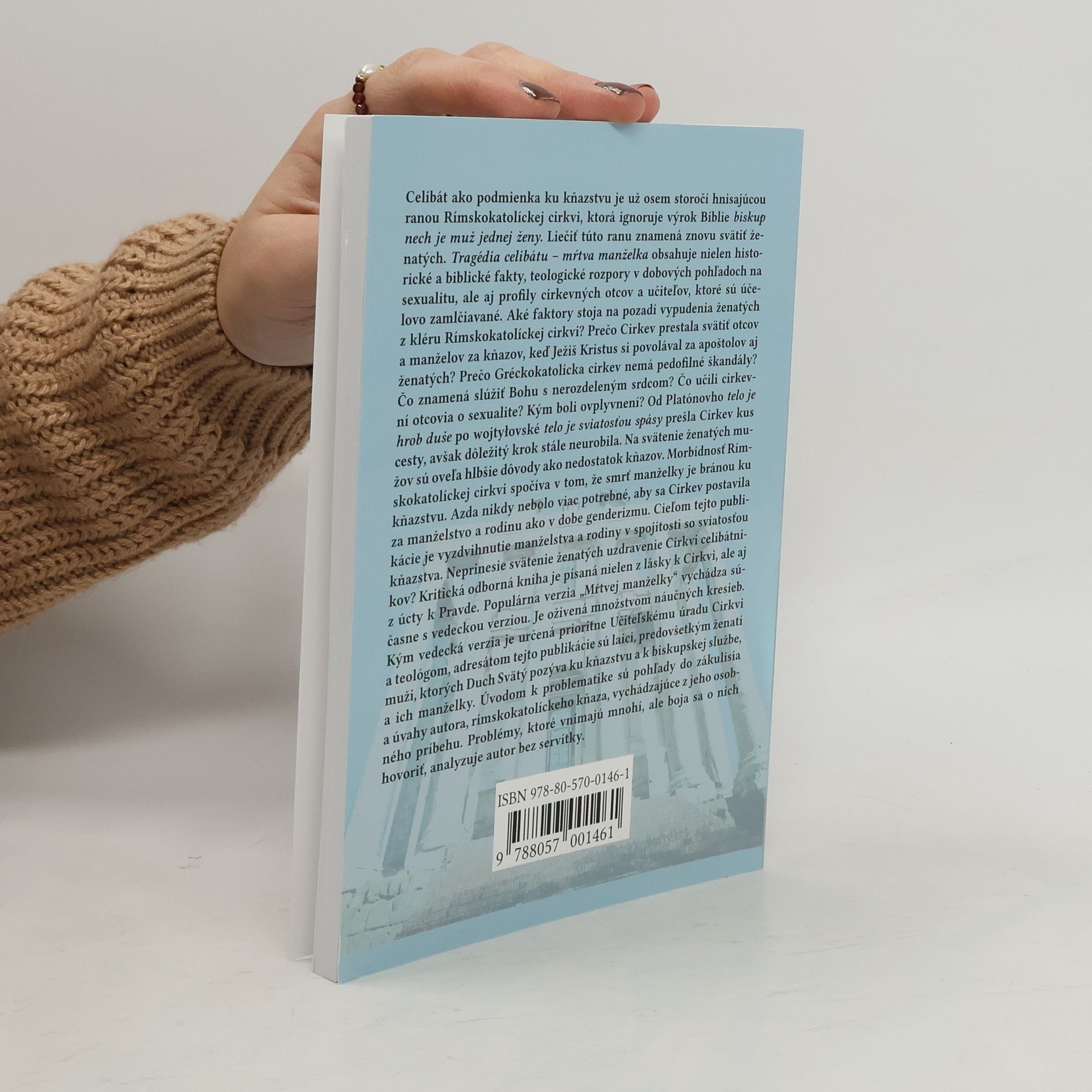 Celibát ako podmienka ku kňazstvu je už osem storočí hnisajúcou ranou Rímskokatolíckej cirkvi, ktorá ignoruje výrok Biblie biskup nech je muž jednej ženy. Liečiť túto ranu znamená znovu svätiť ženatých. Tragédia celibátu mŕtva manželka obsahuje nielen historické a biblické fakty, teologické rozpory v dobových pohľadoch na sexualitu, ale aj profily cirkevných otcov a učiteľov, ktoré sú účelovo zamlčiavané. Aké faktory stoja na pozadí vypudenia ženatých z kléru Rímskokatolíckej cirkvi? Prečo Cirkev prestala svätiť otcov a manželov za kňazov, keď Ježiš Kristus si povolával za apoštolov aj ženatých? Prečo Gréckokatolícka cirkev nemá pedofilné škandály? Čo znamená slúžiť Bohu s nerozdeleným srdcom? Čo učili cirkevní otcovia o sexualite? Kým boli ovplyvnení? Od Platónovho telo je hrob duše po wojtyłovské telo je sviatosťou spásy prešla Cirkev kus cesty, avšak dôležitý krok stále neurobila. Na svätenie ženatých mužov sú oveľa hlbšie dôvody ako nedostatok kňazov. Morbídnosť Rímskokatolíckej cirkvi spočíva v tom, že smrť manželky je bránou ku kňazstvu. Azda nikdy nebolo viac potrebné, aby sa Cirkev postavila za manželstvo a rodinu ako v dobe genderizmu. Cieľom tejto publikácie je vyzdvihnutie manželstva a rodiny v spojitosti so sviatosťou kňazstva. Neprinesie svätenie ženatých uzdravenie Cirkvi celibátnikov? Kritická odborná kniha je písaná nielen z lásky k Cirkvi, ale aj z úcty k Pravde.