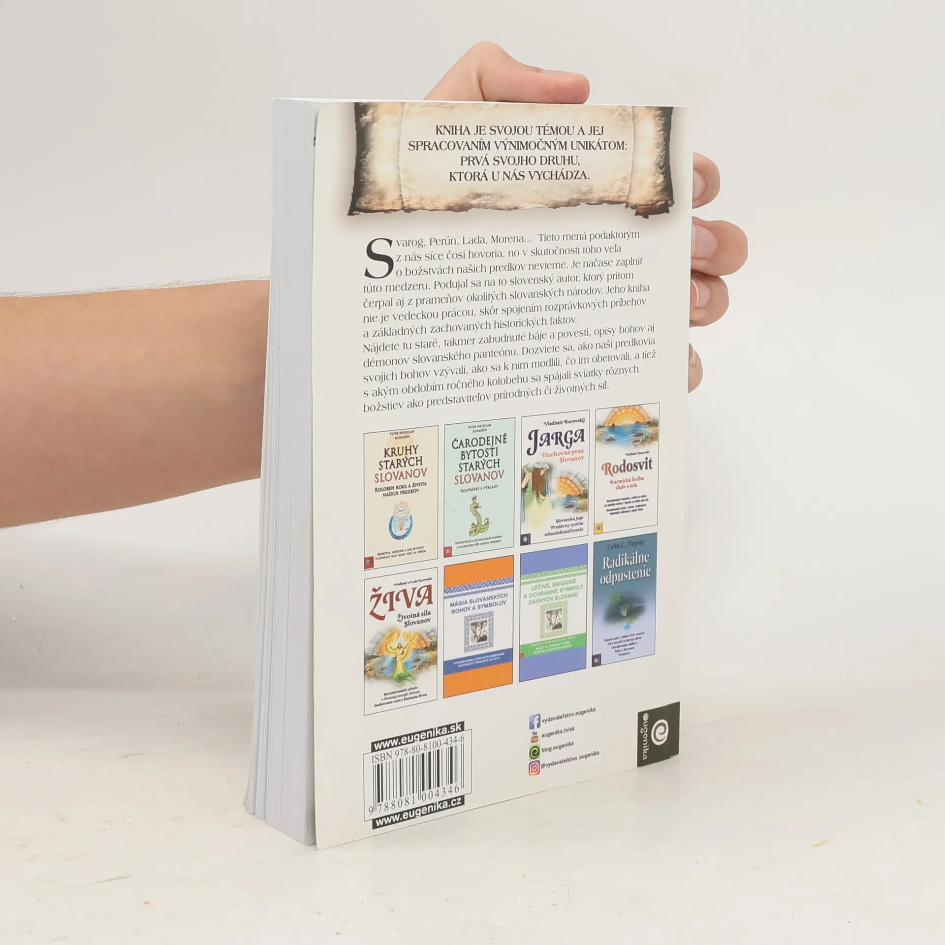 Jedinečné dielo! Slovami autora: „Svarog, Perún, Veles – kto by nepoznal tieto staré slovanské božstvá? To som si myslel pôvodne i ja predtým, než som začal pracovať na tejto knihe. Prišiel som však na to, že väčšina z nás vie o božstvách našich predkov veľmi málo. Poznáme rôzne staroveké mýty: grécke, rímske... poznáme množstvo božstiev indických či tibetských, ba aj o Ódinovi alebo Thórovi toho vieme viac, ako o našich pôvodných slovanských božstvách. A tak som sa podujal na napísanie tejto knihy, ktorá nemá byť vedeckou publikáciou, ale skôr takou slovanskou Odyseou. Nájdete tu staré, takmer zabudnuté legendy, ako aj opisy bohov a démonov slovanského panteónu. Dozviete sa, ako asi naši predkovia svojich bohov vzývali, ako sa k nim modlili aj čo im obetovali. Pri písaní som čerpal informácie z rôznych zdrojov. Nielen zo slovenských či českých, ale aj z poľských, a v neposlednom rade ruských a ukrajinských.“