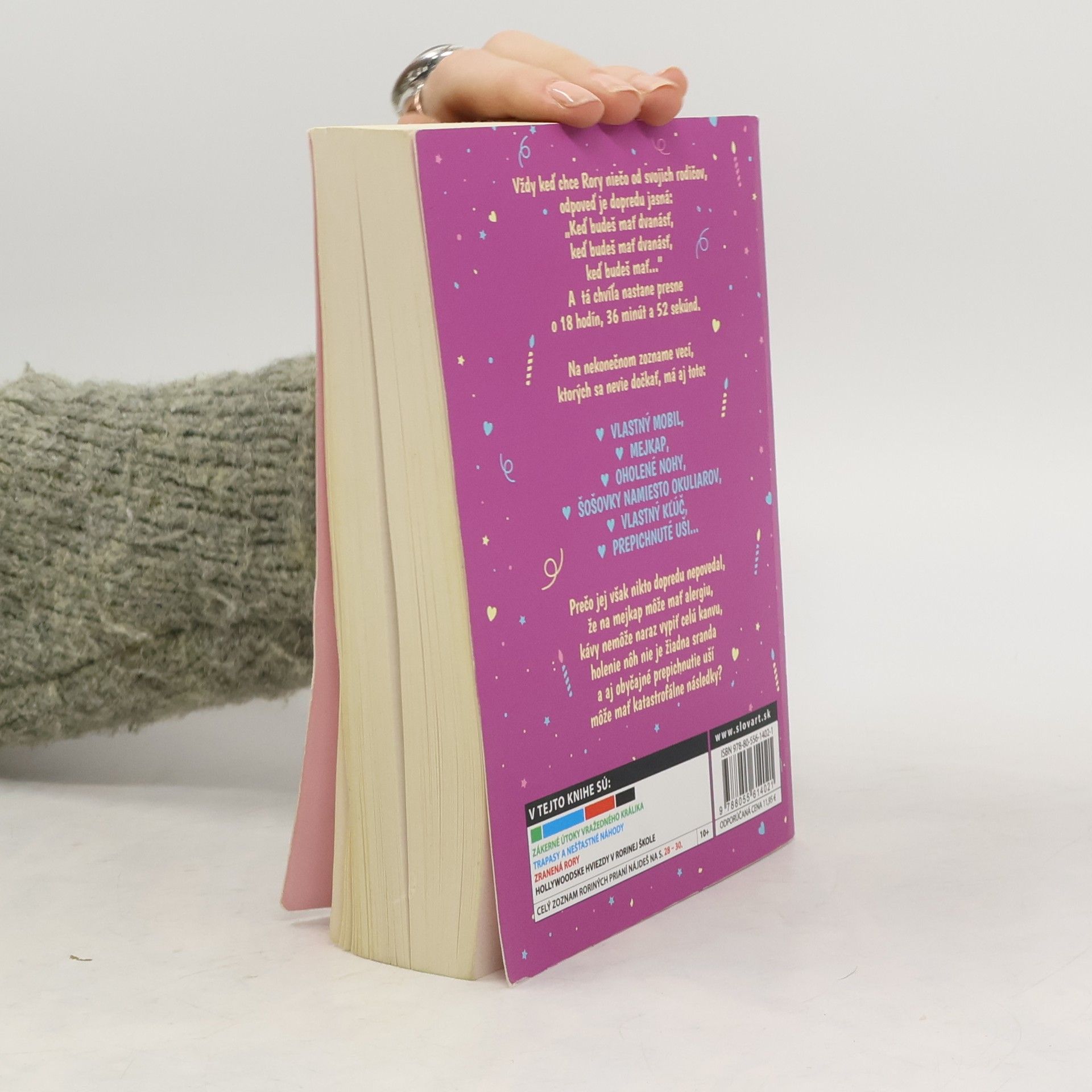Kniha Konečne dvanásťročná je voľným pokračovaním knihy Zakliate jedenáste narodeniny. Hlavnou hrdinkou knihy je tentoraz Rory. Na svoje dvanáste narodeniny netrpezlivo čakala celý život. Má dokonca aj zoznam vecí, ktoré sa jej v ten vysnívaný deň splnia. Vždy, keď o niečo požiada rodičov, odpovedia jej: „Keď budeš mať dvanásť, keď budeš mať dvanásť, keď budeš mať dvanásť..." Nuž, presne o osemnásť hodín, tridsaťšesť minút a päťdesiatdva sekúnd začne Rory konečne žiť naplno! Vtipný príbeh plný prekvapení o túžbe dospieť, aj keď celý vesmír naznačuje, že ešte treba chvíľu počkať, určite zaujme každé dievča.