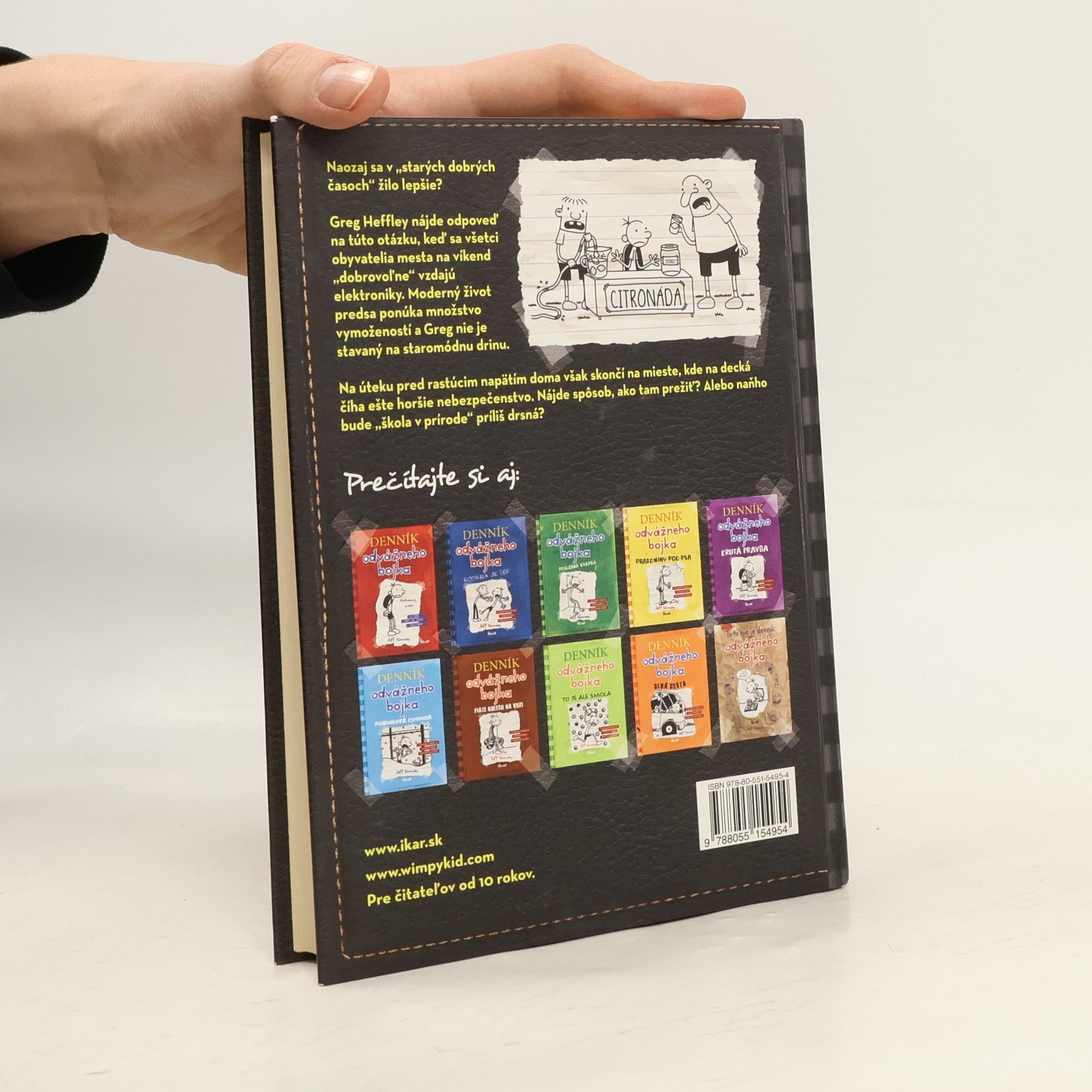 Séria: Denník odvážneho bojka 10. Naozaj sa v „starých dobrých časoch“ žilo lepšie? Greg Heffley nájde odpoveď na tú otázku, keď sa všetci obyvatelia mesta na víkend „dobrovoľne“ vzdajú elektroniky. Moderný život predsa ponúka množstvo vymožeností a Greg nie je stavaný na staromódnu drinu. Na úteku pred rastúcim napätím doma však skončí na mieste, kde na decká číha ešte horšie nebezpečenstvo. Nájde spôsob, ako tam prežiť? Alebo naňho bude „škola v prírode“ príliš drsná?