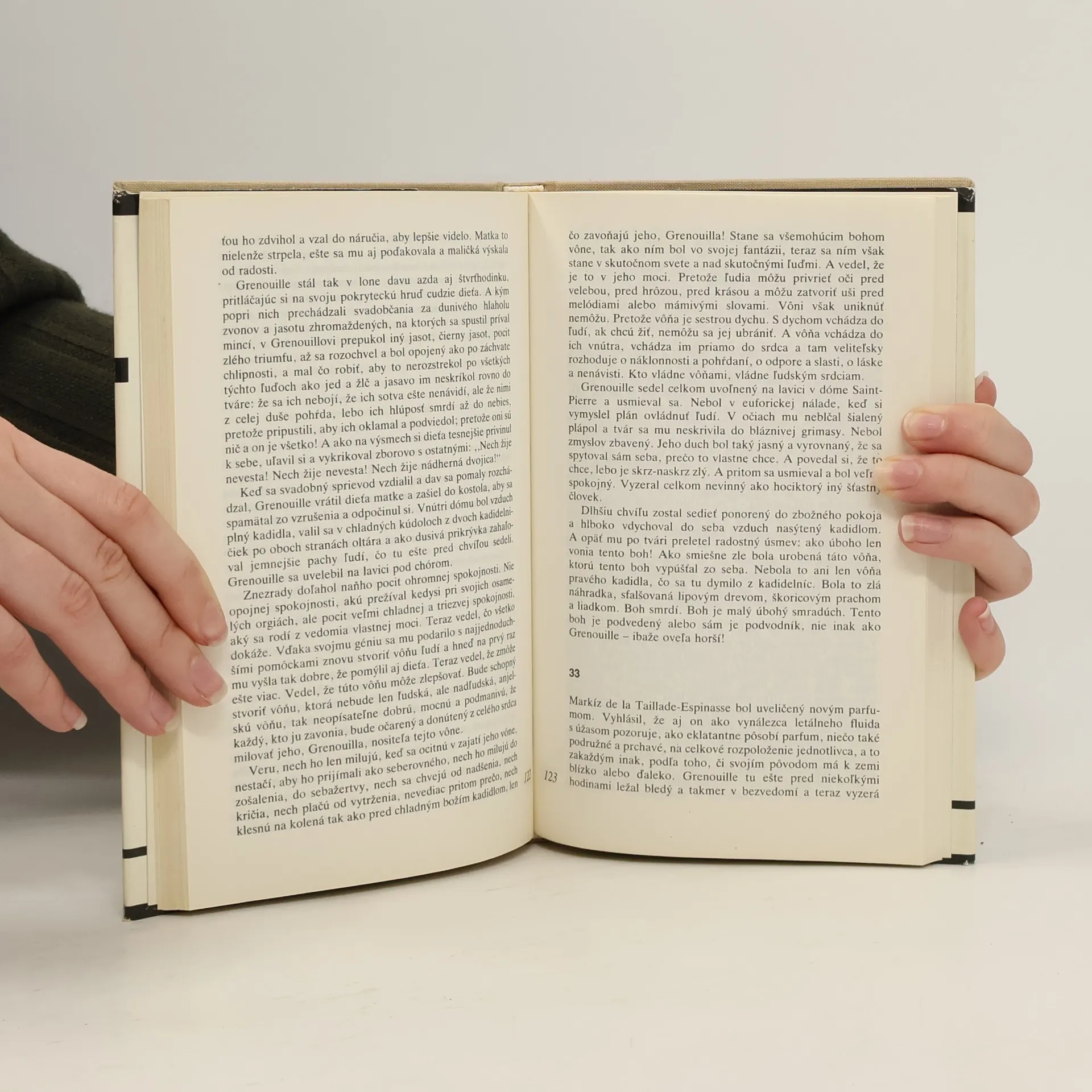 Keď počujeme názov mesta Paríž, azda sa nám trochu zakrúti hlava: z krásy, zo všemožných vôní, ktoré toto mesto šarmu a elegancie ponúka. Iste bol taký aj v 18. storočí, no v Süskindovej knihe ho pozorujeme z opačnej strany. Pach stoky a plesnivých rýb v stánku, kde predáva žena, ktorá prechádza životom akoby bez závanu lásky, bez akéhokoľvek prísľubu radosti či šťastia. A práve jej sa narodí neduživý chlapec, ktorý nemá nijakú šancu na prežitie a čaká naňho osud zapáchajúcich rýb...