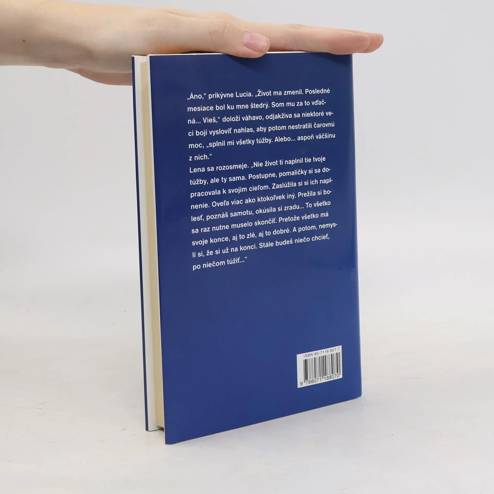Lucia, hlavná hrdinka románu, je slobodná mamička, ktorej život v podobe neseriózneho partnera uštedril prvú krutú príučku. Hoci má radosť zo svojho synčeka, dobré vzťahy na pracovisku, doma trpí v područí despotickej matky, ktorá akoby jej nechcela dožičiť nijakú radosť zo života. Lucia je unavená z problémov všedných, jednotvárnych dní a už ani nedúfa, že by sa jej mohlo stať niečo pekné. Až jedného dňa odíde na lyžovačku a jej život sa celkom zmení...