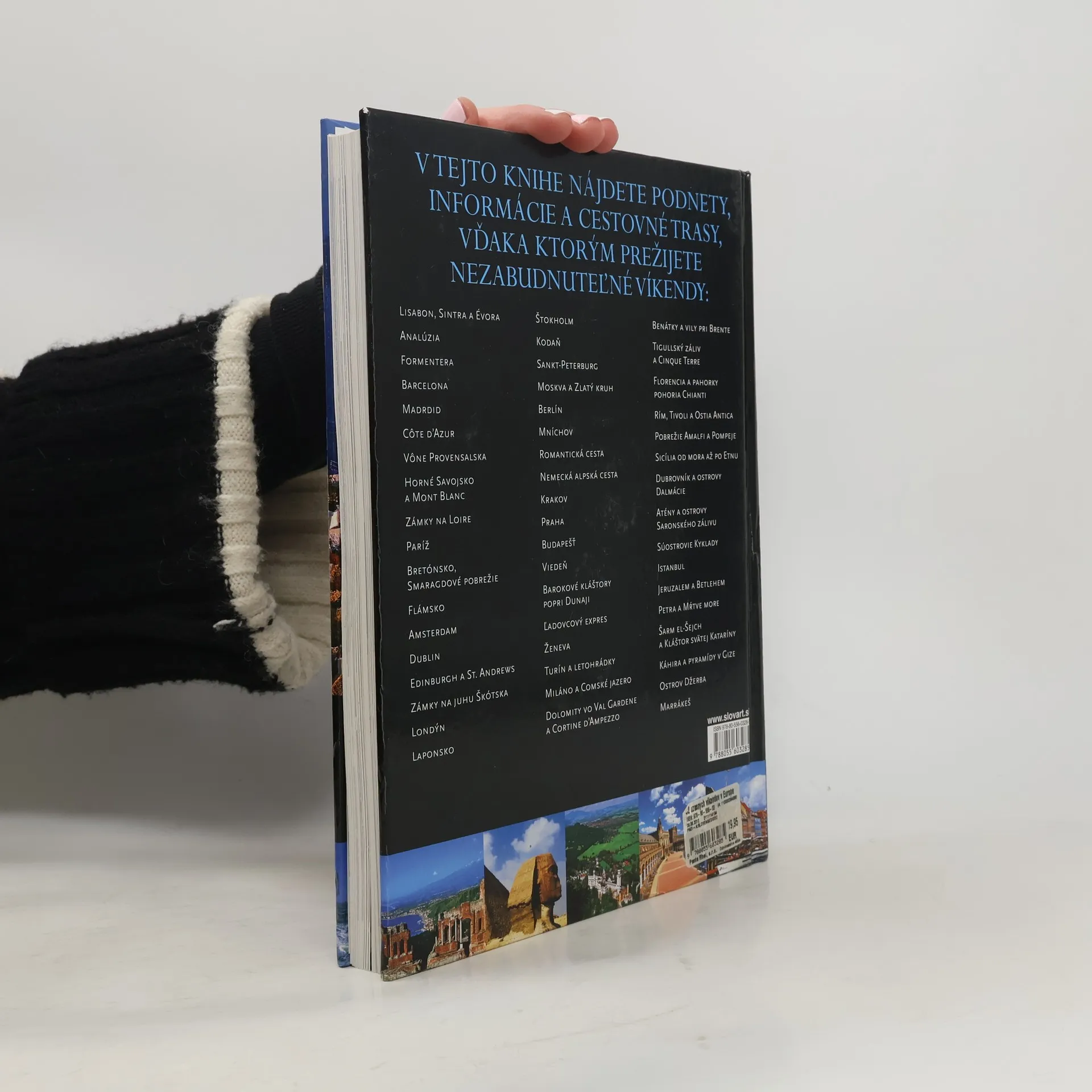 Sprievodca 52 víkendmi (jeden cieľ na každý víkend v roku) vás pozýva objavovať mestá, turistické trasy, pobrežia, ostrovy a krajiny v Európe a stráviť na týchto miestach vzrušujúci víkend. Predstavíme vám okrem iného talianske mestá ako Rím, Benátky, Florencia a Miláno. Nechýbajú však ani ďalšie európske metropoly. Za všetky spomeňme napríklad Paríž, Londýn či Berlín. Sú nezvyčajné, fascinujúce a nádherné. Nesmierne príťažlivé sú aj klasické destinácie, akými sú pobrežie pri talianskom Amalfi, zámky v Škótsku, Romantická cesta v Nemecku a Andalúzii. Nesmieme zabudnúť ani na trasu po barokových kláštoroch popri Dunaji, či naprieč laponským večným snehom a ľadom. Mapky miest a informácie o otváracích časoch pamiatok a múzeí uľahčujú a sprehľadňujú pobyt na týchto čarovných miestach.
