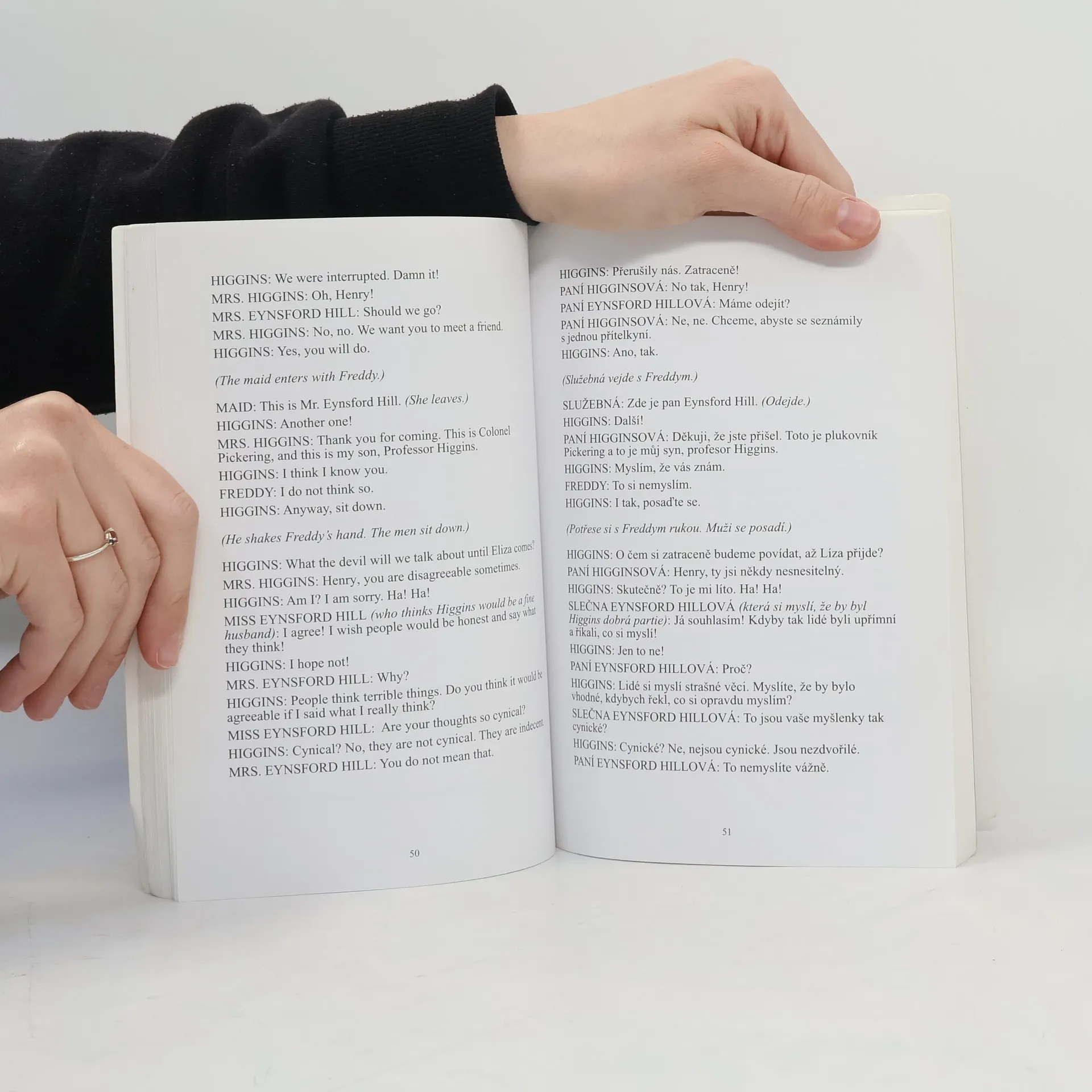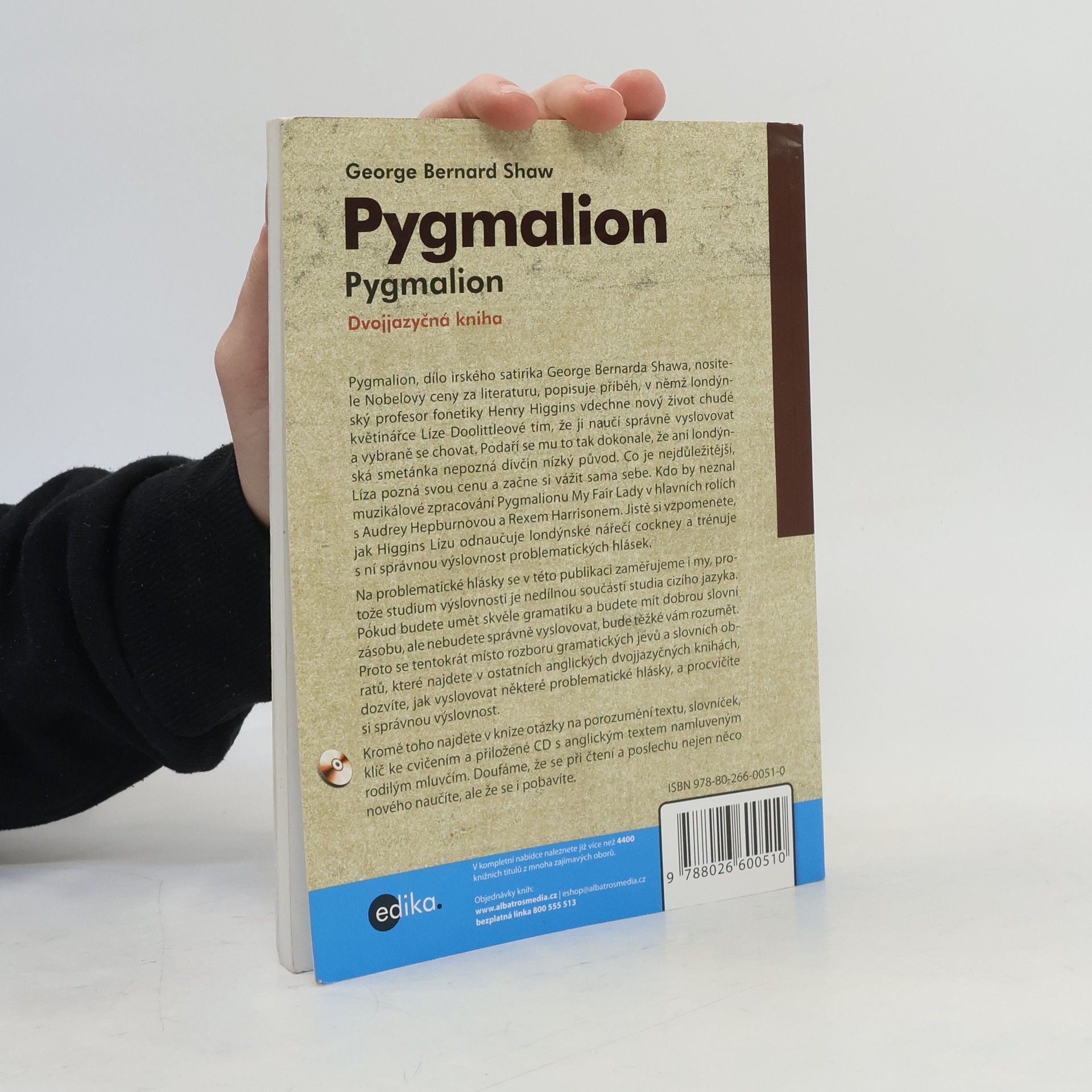 Jazyková úroveň: Pokročilí Pygmalion, dílo irského satirika Georgie Bernarda Shawa, nositele Nobelovy ceny za Literaturu popsuje příběh, kdy londýnský profesor fonetiky Henry Higgins vdechne nový život chudé květinářce Líze Doolittleové tím, že ji naučí správně vyslovovat a vybraně se chovat. Podaří se mu to tak dokonale, že ani londýnská smetánka nepozná dívčin nízký původ. Co je nejdůležitější, Líza pozná svou cenu a začne si vážit sama sebe. Kdo by neznal muzikálové zpracování Pygmalionu My Fair lady v hlavní roli s Audrey Hepburnovou a Rexem Harrisonem. Jistě si vzpomenete, jak Higgins Lízu odnaučuje londýnské nářečí cockney a trénuje s ní správnou výslovnost problematických hlásek. Na problematické hlásky se v této publikaci zaměřujeme i my, protože studium výslovnosti je nedílnou součástí studia cizího jazyka. Pokud budete umět skvěle gramatiku a budete mít dobrou slovní zásobu, ale nebudete správně vyslovovat, bude těžké vám rozumět. Proto se tentokrát místo rozboru gramatických jevů a slovních obratů, které najdete v ostatních anglických dvojjazyčných knihách, dozvíte, jak vyslovovat některé problematické hlásky a procvičíte si správnou výslovnost. Doufáme, že se při čtení a poslechu nejen něco nového naučíte, ale že se i pobavíte.